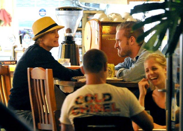 Check out Wright in Australia last week with Foster, an extremely talented actor...and you’ll know this if you’ve seen The Messenger. They met on the set of Rampart. He’s with her as she’s working on a new film. Seems like theirs is a very...tactile relationship. HOT.