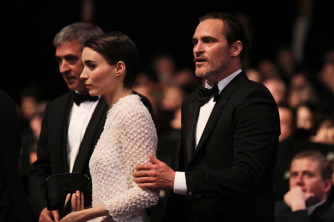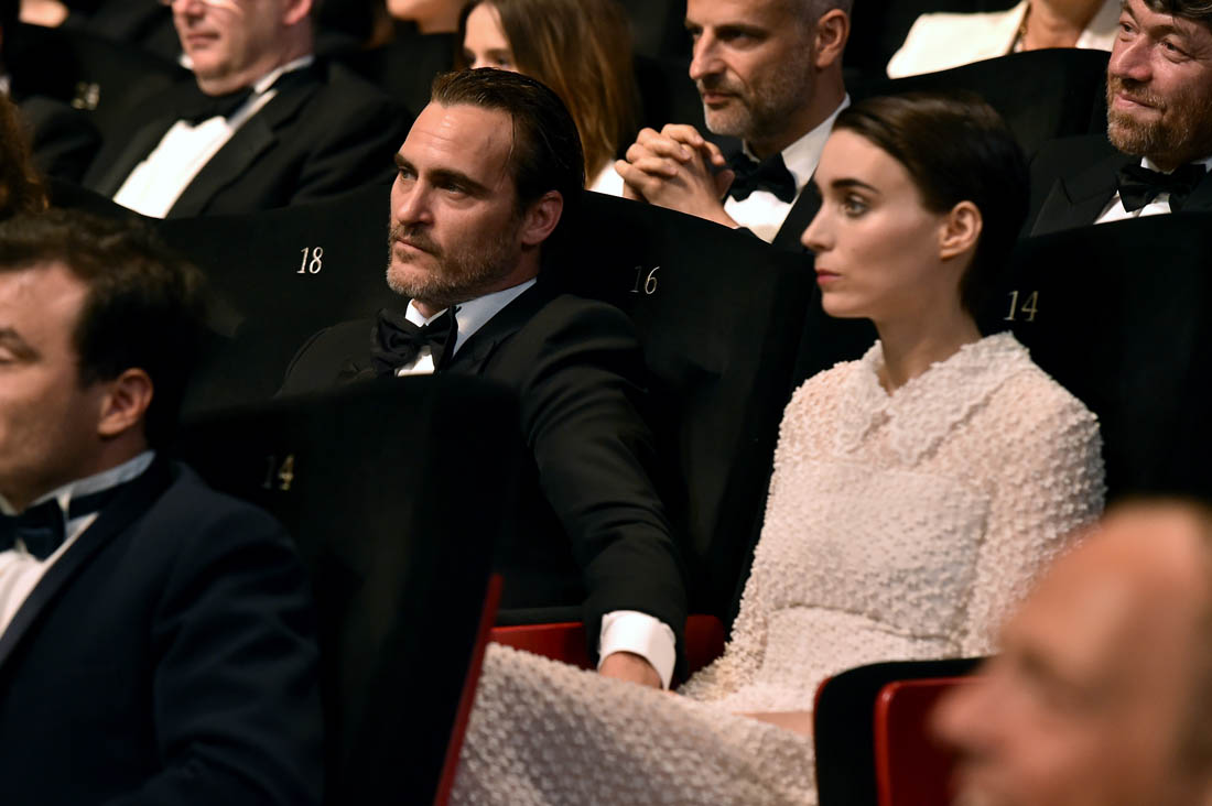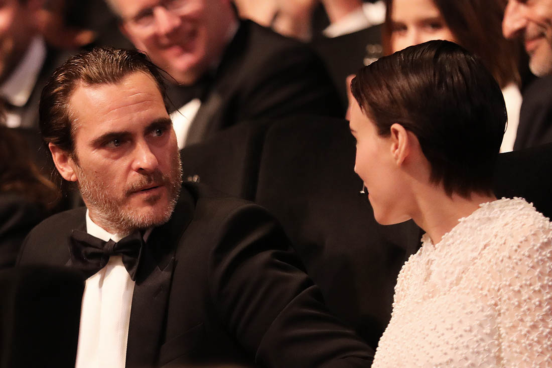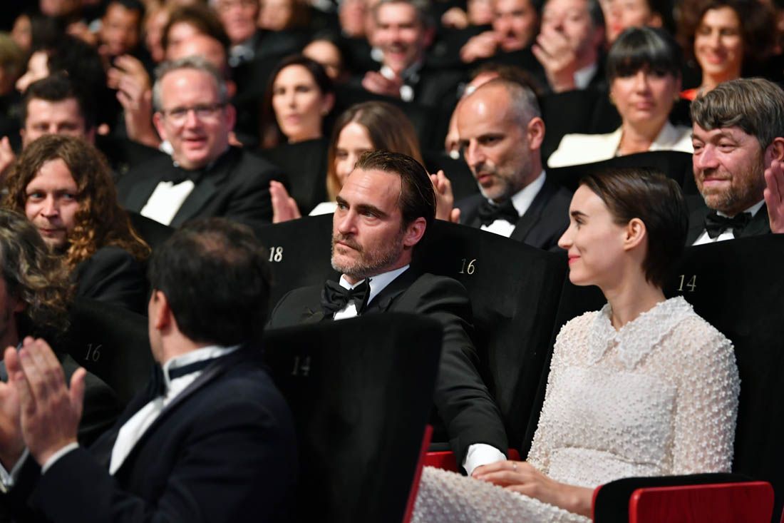 Rooney Mara was in Cannes and, as far as I can tell, she had no project of her own to promote. Her first appearance at the festival was in support of You Were Never Really Here. So, presumably then, she travelled to Cannes with him just for this. She was seated with Joaquin in the theatre. They held hands. And that photo of him smiling at her – I can’t remember the last time Joaquin was at a public event on this scale, wearing a tuxedo, and smiling at someone so warmly… with photographers present. When it was first reported that they were together, it was said that they were already deeply in love. I believe it.