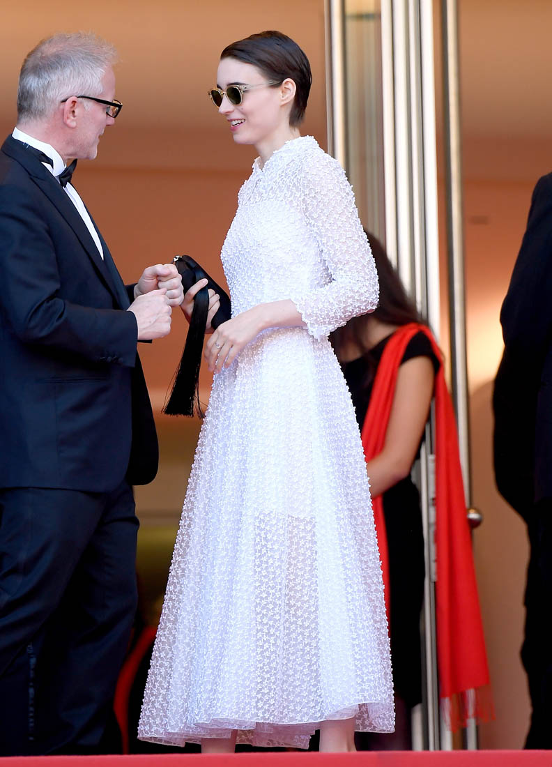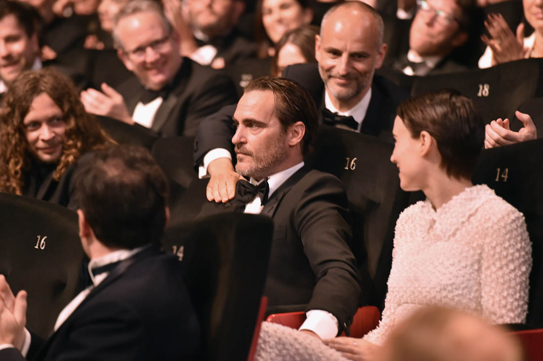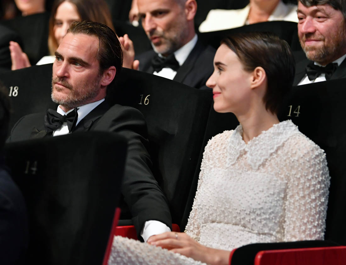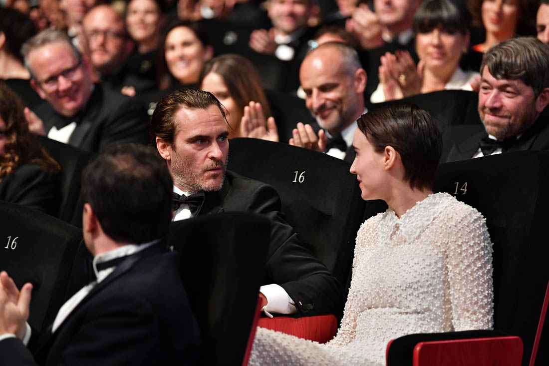 Rooney Mara was in Cannes and, as far as I can tell, she had no project of her own to promote. Her first appearance at the festival was in support of You Were Never Really Here. So, presumably then, she travelled to Cannes with him just for this. She was seated with Joaquin in the theatre. They held hands. And that photo of him smiling at her – I can’t remember the last time Joaquin was at a public event on this scale, wearing a tuxedo, and smiling at someone so warmly… with photographers present. When it was first reported that they were together, it was said that they were already deeply in love. I believe it.