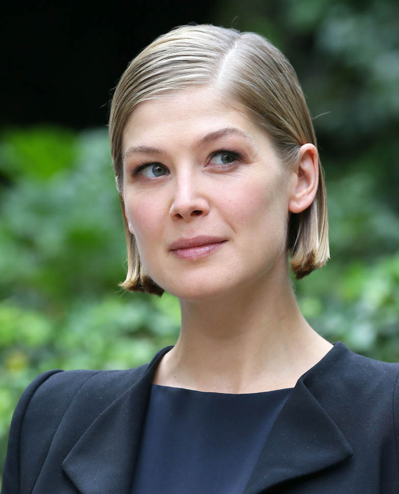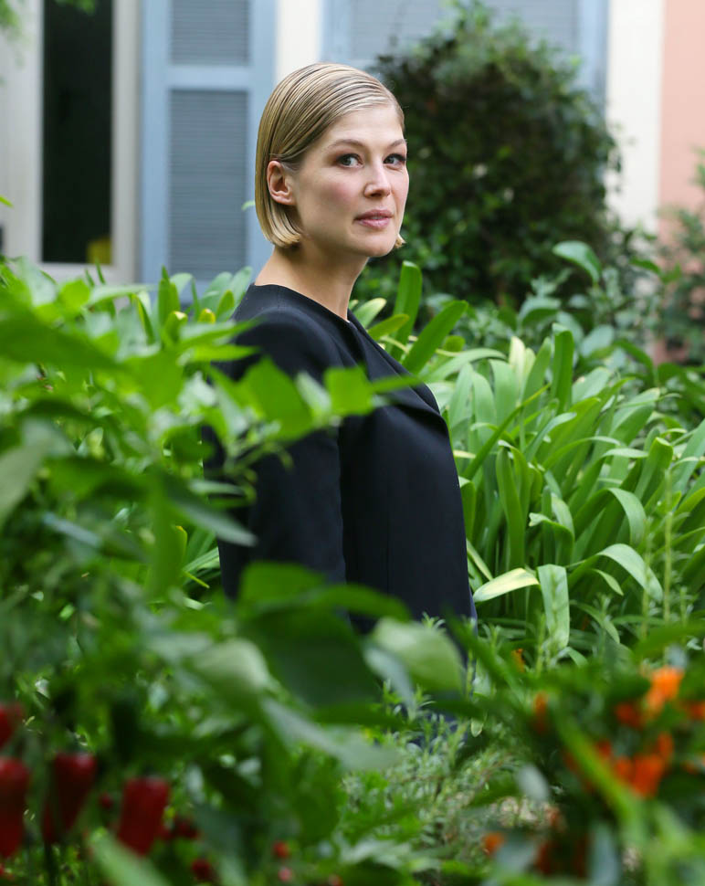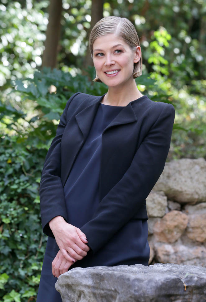 Check out Rosamund Pike in Rome today at a photo call to promote Gone Girl. Haven't seen Ben Affleck yet. He might not be there. And if not, I agree with this strategy. We already know Ben Affleck. Rosamund Pike? Not a household name. But that could change soon.