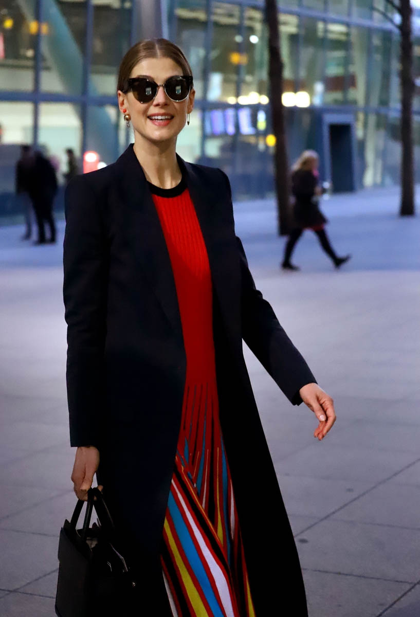 Carpets & Candids: Rosamund Pike’s travel stripes