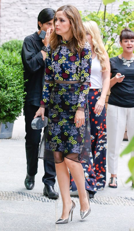 Rose Byrne’s wearing Erdem. I love this print. It comes in a variety of different cuts. This one…is not my favourite. I don’t mind the gap in the midsection but it’s the sheer I’m not feeling. This trend of putting a longer sheer layer over a shorter solid one underneath? I hope it passes soon.
