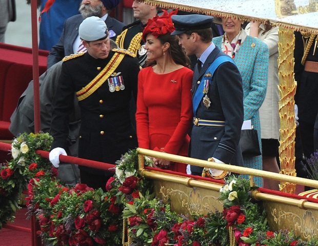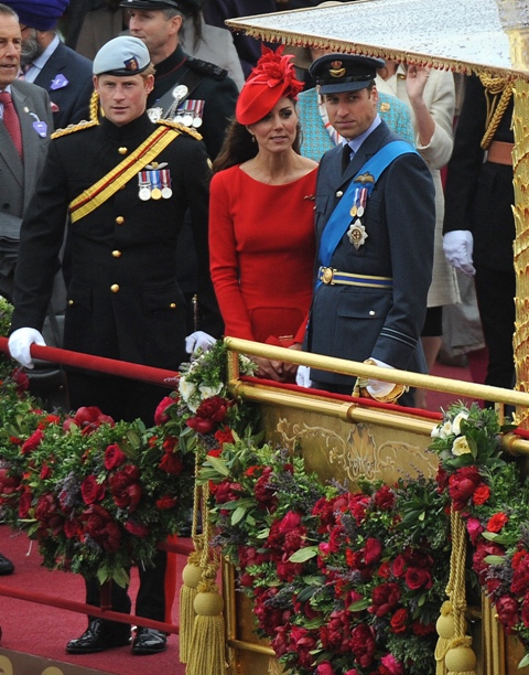 But the Queen was marvellous yesterday, wasn’t she? I don’t think I saw her sit down even once. Pretty sure those velvet chairs went unused the whole time. It was Her Majesty’s day for sure. And still, my primary focus on these events is usually Prince Harry. Because while everyone else remembers to put on the mask, Harry’s the one who has a hard time keeping it on. Which is why at almost every important Royal Family function, there’s always at least one shot of Harry giggling, or suppressing his giggling, or trying to make someone else giggles. It reminds me of the shot of his mother snatching his hand all those years ago when they were seated at a presentation somewhere and the little scamp lifted his fingers to mock someone and Diana, with quick reflexes, caught it immediately and slapped it down on her thigh. These were the moments that revealed she was a mother who was present in their lives and didn’t toss them off to nannies only to make cameo appearances in their lives. She knew exactly how to read her boys and when to head them off.