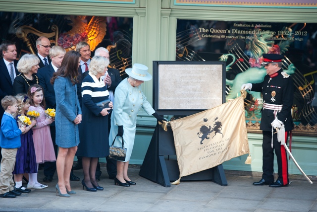 Her Majesty was joined by her daughter-in-law and her grand daughter-in-law today in London on a visit to Fortnum & Mason. They all toured the food hall together.