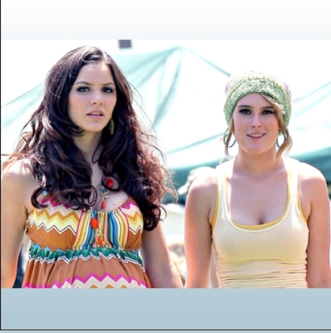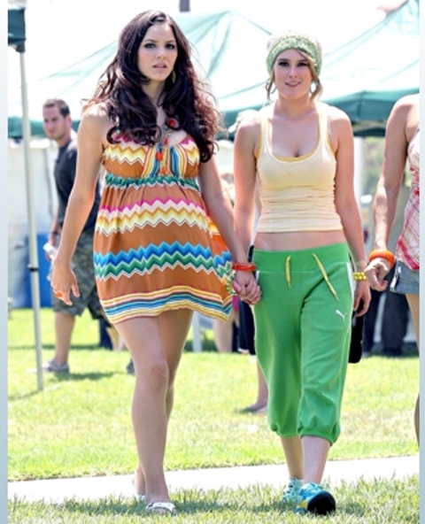 Here she is with Katherine McPhee* on the set of their new movie.