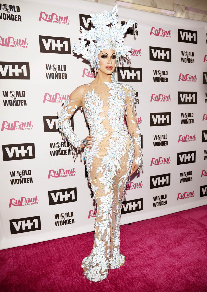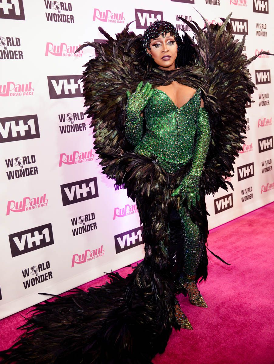 Early sashayers from this season brought their A-game. My favourite is Kahana Montrese’s leather, kinda-punk, winged outfit. We didn’t get to see much of her this season, and I think it’s a shame because this look is EVERYTHING. Soju’s makeup and hair are flawless, and she’s gorgeous in that dress – a great way to salute her heritage. Brooke Lynn Hytes is dressed like a winner (more on that in a bit) while A’keria and Yvie are perfect examples of how to elevate signature looks. I’m in love with Yvie’s muscle dress, and Akeria’s feathered, green gown makes me think that maybe she should play Maleficent instead of Angelina Jolie. There’s too much glamour to describe on this carpet so be sure to look at all the photos in the gallery below.