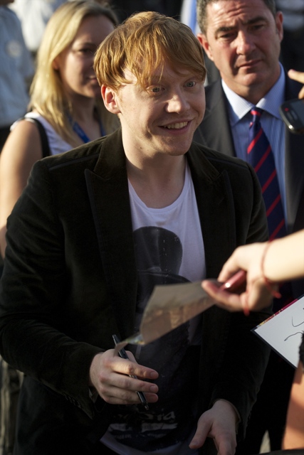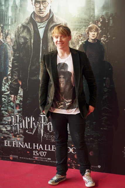 Well, Rupert Grint and James and Oliver Phelps were in Spain yesterday to promote The End and his hair looks like it did in the beginning. How f-cking cute???