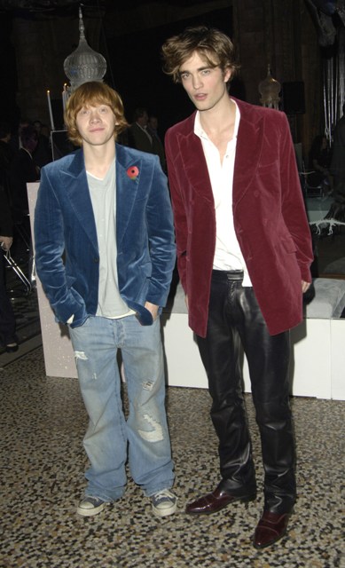 Turns out it was a long time ago. Back in 2005. At the London premiere of Harry Potter and the Goblet of Fire. Where for some reason Rupert, evidently going through a Hair phase, is wearing bell jeans and Robert is in a pair of leather pants with what looks like...a red crushed velvet blazer? What is this world!? How can we go back there?!? When was he, like, Pete Doherty, only not a festering wound and not ugly but really, really crazy London androgen beautiful?