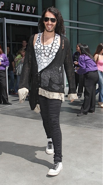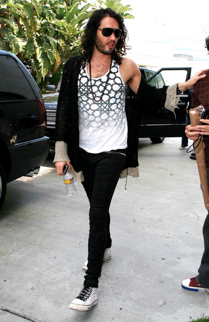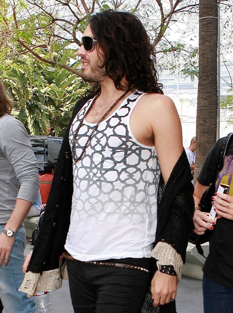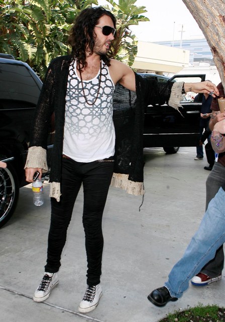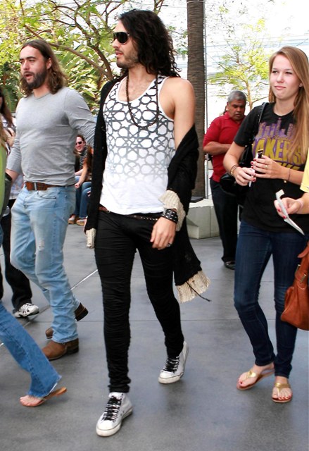 Russell Brand heading to the Laker game on Sunday. F-ck he’s disgusting. Hilariously, nastily disgusting. But why should I judge who you want to shamef-ck? If he is indeed your shamef-ck … giv’er. But never tell.
