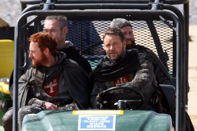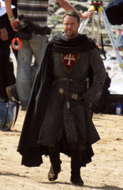 Some great shots of Russell Crowe today on location in Wales for his new highly anticipated Robin Hood movie with Ridley Scott. They’ve reportedly been scrapping incessantly, two massive egos battling every day. The studio has denied it but it’s totally believable.
