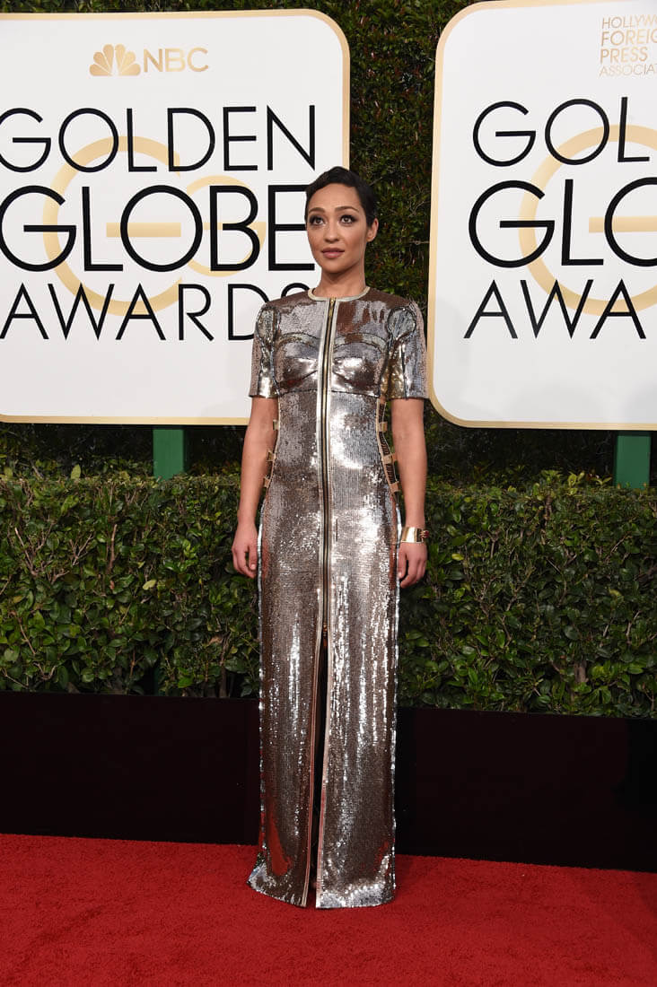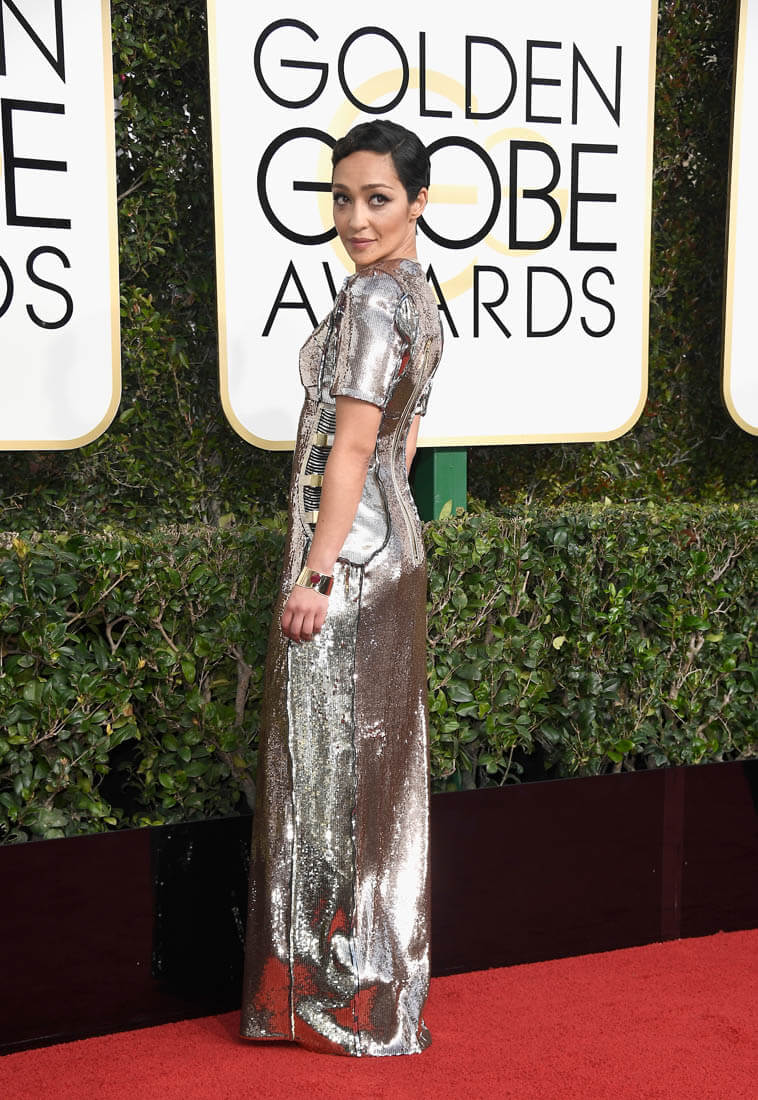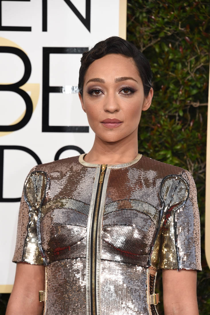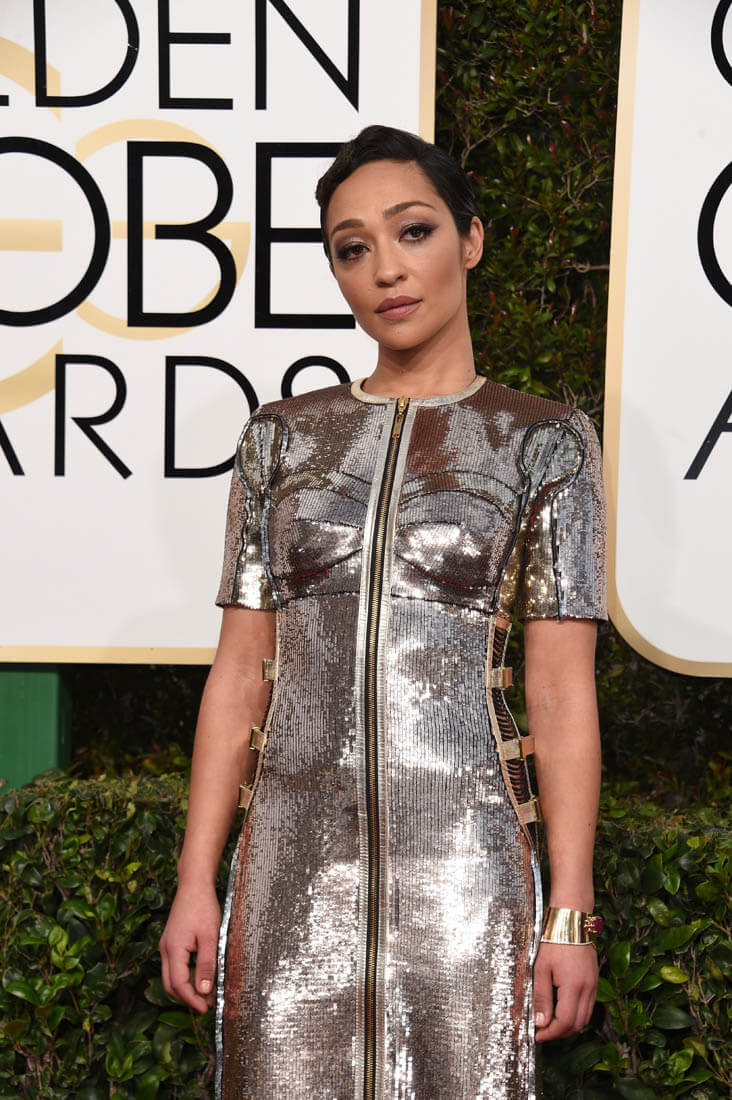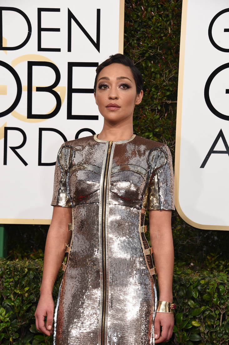 I LOVE that it’s essentially just a t-shirt dress. I LOVE the t-shirt sleeves. I LOVE zipper feature. I love the bands along the side. I F-CKING LOVE that cuff. Gal Gadot was there last night. But, as corny as this sounds, the Wonder Woman of style was undeniably Ruth Negga. Ruth is not nominated for a SAG Award. And she’s losing momentum for an Oscar nomination. So this may be her fashion statement of the season. I’ll remember it all year.