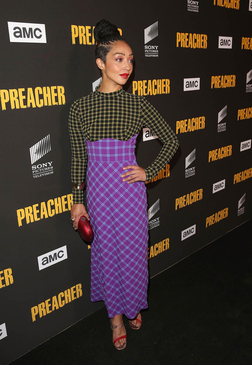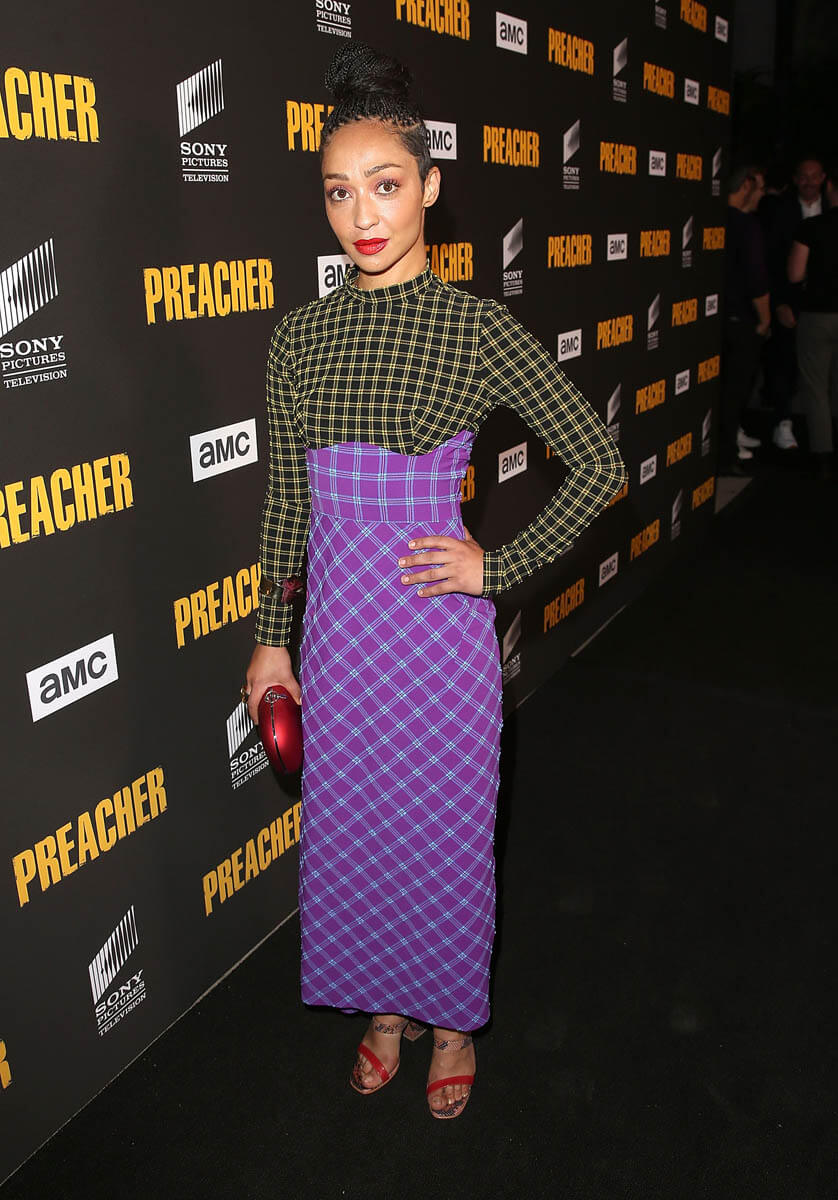 Ruth Negga rarely disappoints. She is not disappointing me here in this clashing print dress in colours and directions that aren’t supposed to work together at all. But of course they do. Why not? It gets boring when everything lines up all the time, non?