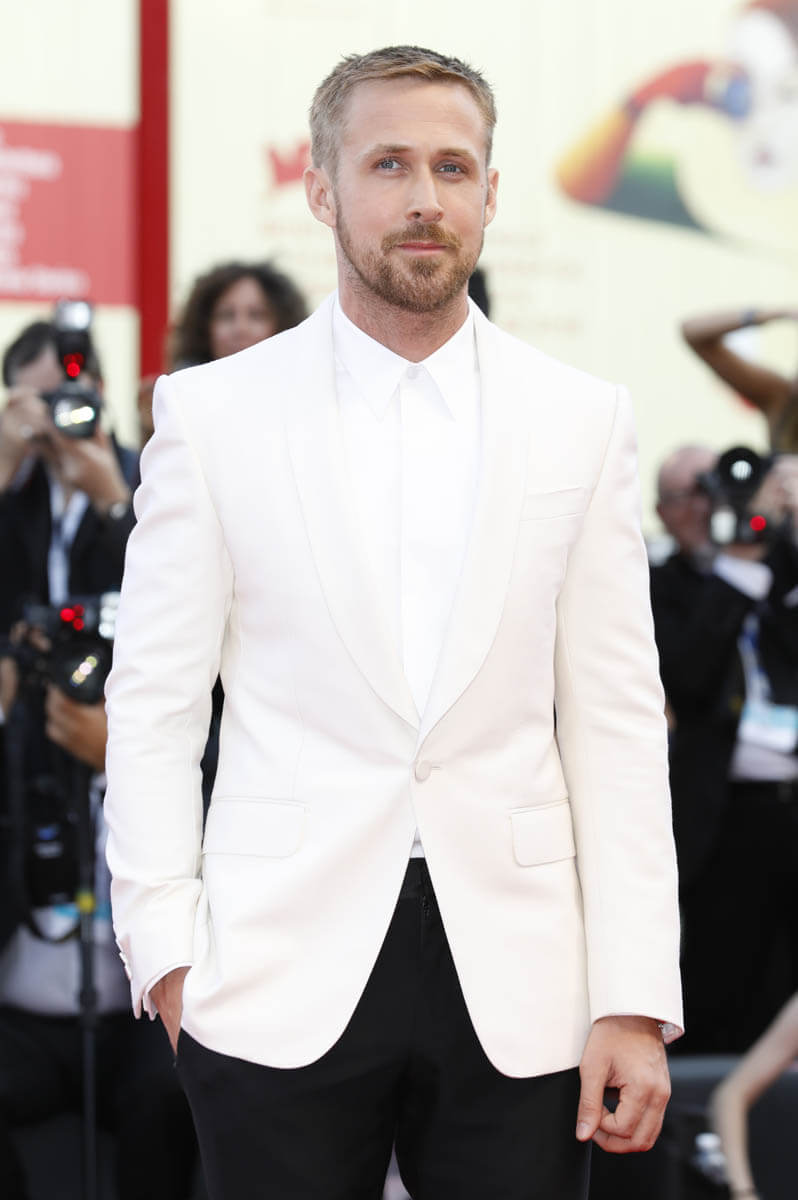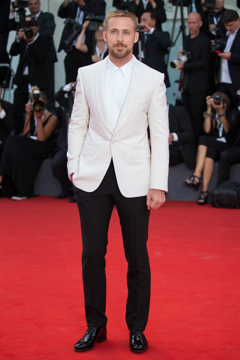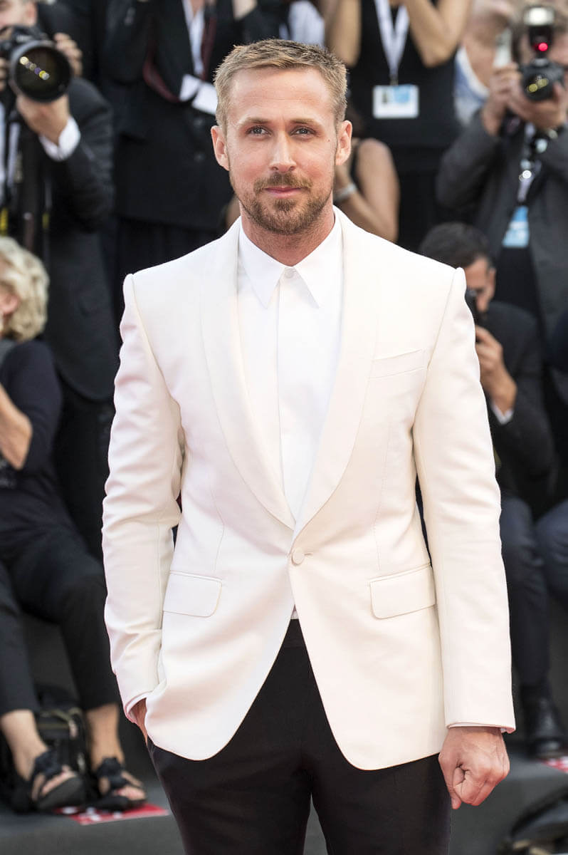I think Ryan Gosling’s stylist and I might be mind-melding. Yesterday I posted about his arrival in Venice ahead of the First Man world premiere and I predicted that he’d wear a white tux to the gala. Which is what he did. He likes a white jacket. This time he went without a bow tie. I don’t think I mind?