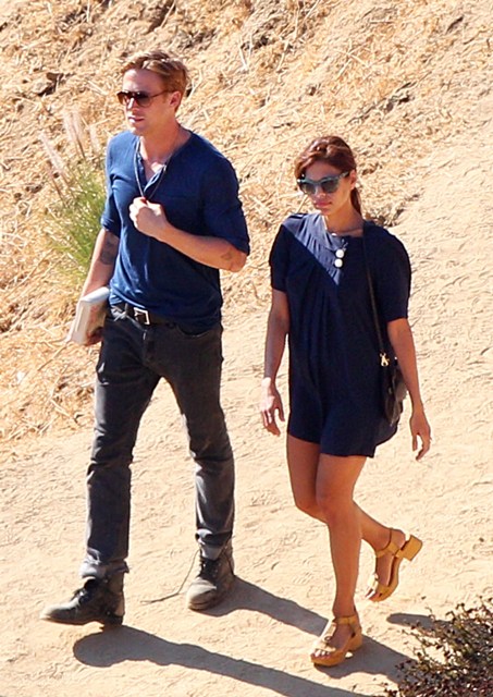 Ryan Gosling and Eva Mendes hooked up for a hike on Sunday. A hike is good. I love hiking. The Vancouver kind of hiking. Pretty sure what they’re doing here though isn’t the Vancouver kind of hiking. Or at least not in those shoes. They probably didn’t go far. He has a book in his hand. Maybe they woke up after a sleepover and decided to go for a walk and found a nice shady patch...and, gulp, he read to her? Oy. I can’t deal with this today. Cannot.