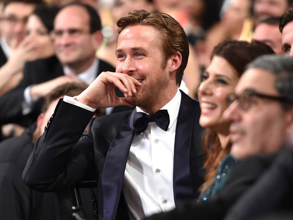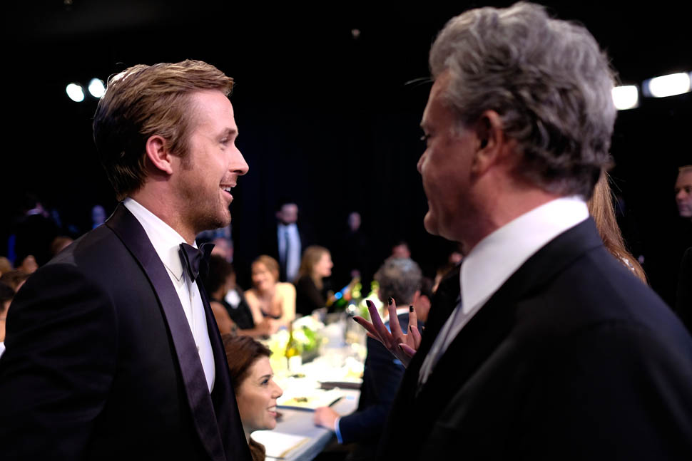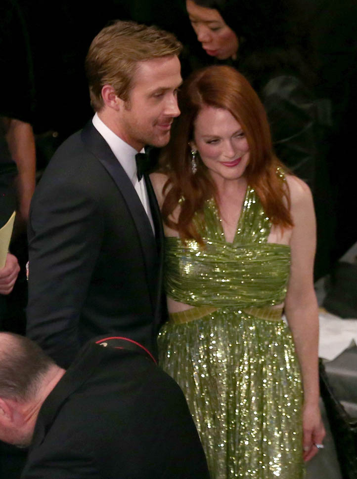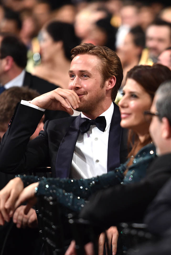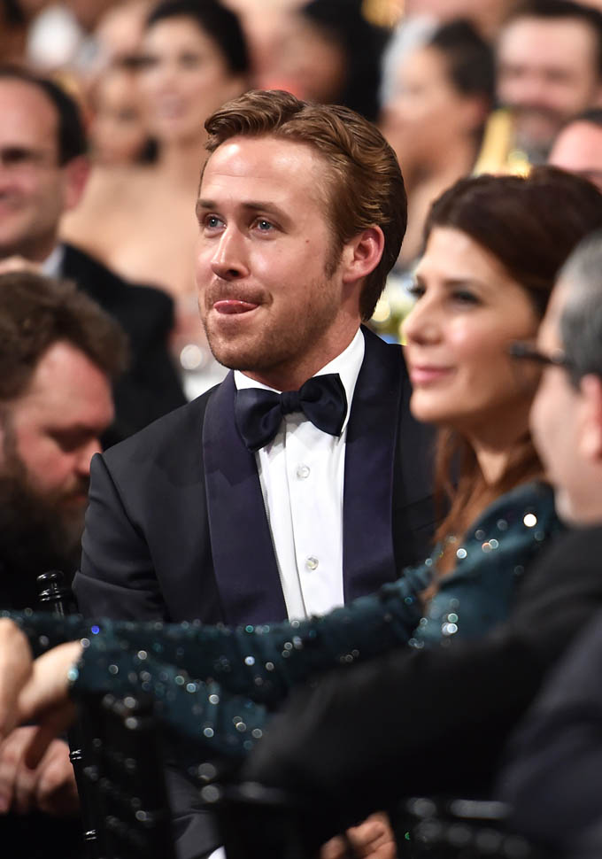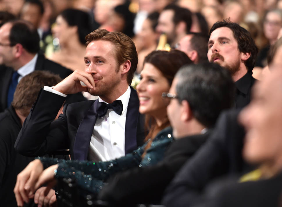 They weren’t seated very close to each other at all at the SAGs. Ryan was, however, hanging out with Marisa Tomei. They worked together on The Ides Of March. At one point, the camera cut away to them talked. This is what it looked like: