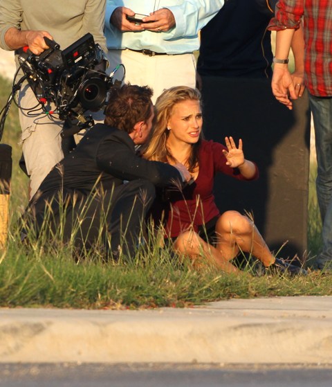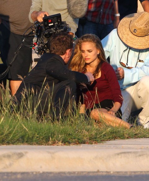 Attached - Fassbender shooting with Natalie Portman in Austin yesterday. (Lainey: they’re also supposed to be working together on the upcoming Jane Got A Gun playing possible ex-lovers -- click here for a refresher on that.)