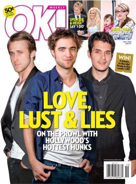 Ryan Gosling is sharing the cover of OK! Magazine this week with Robert Pattinson and John Mayer: