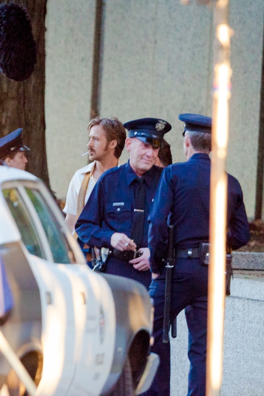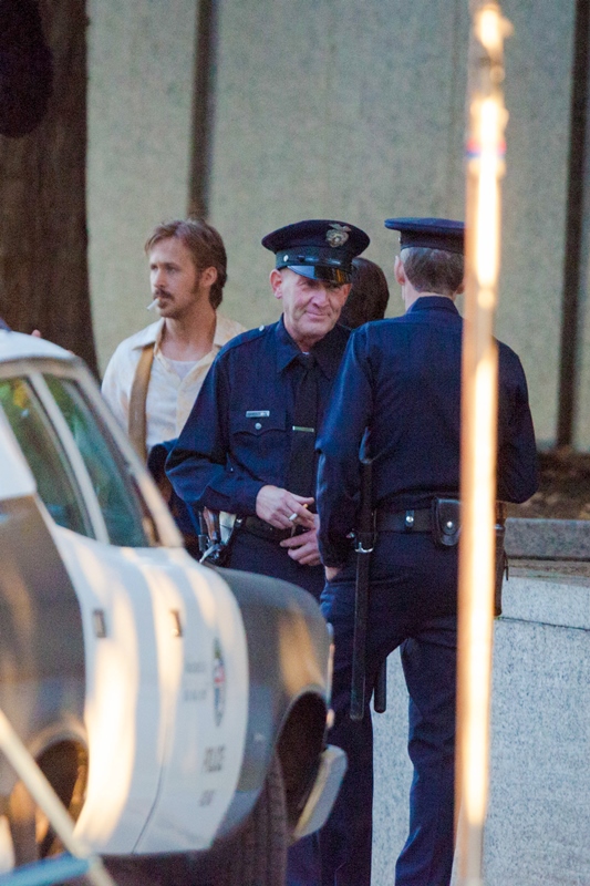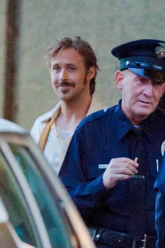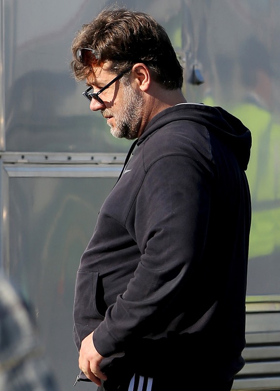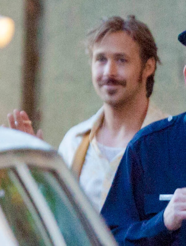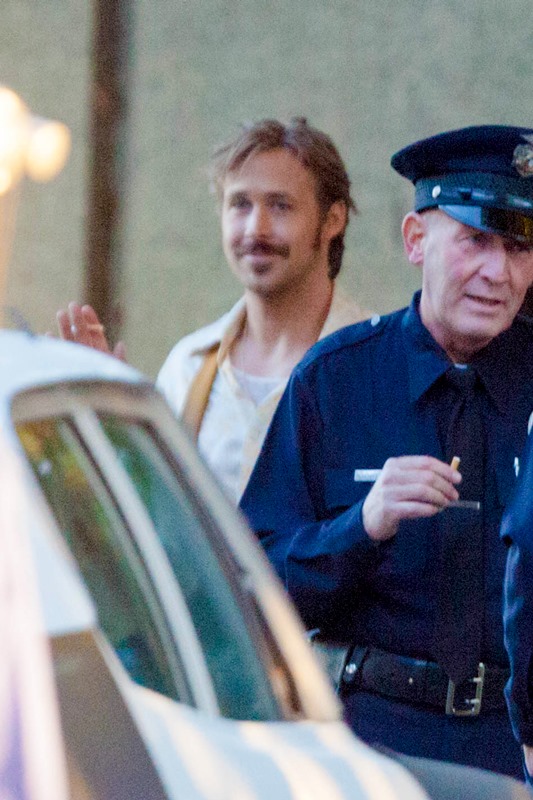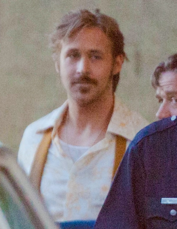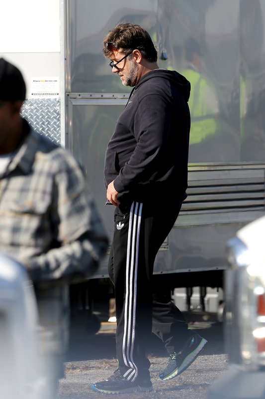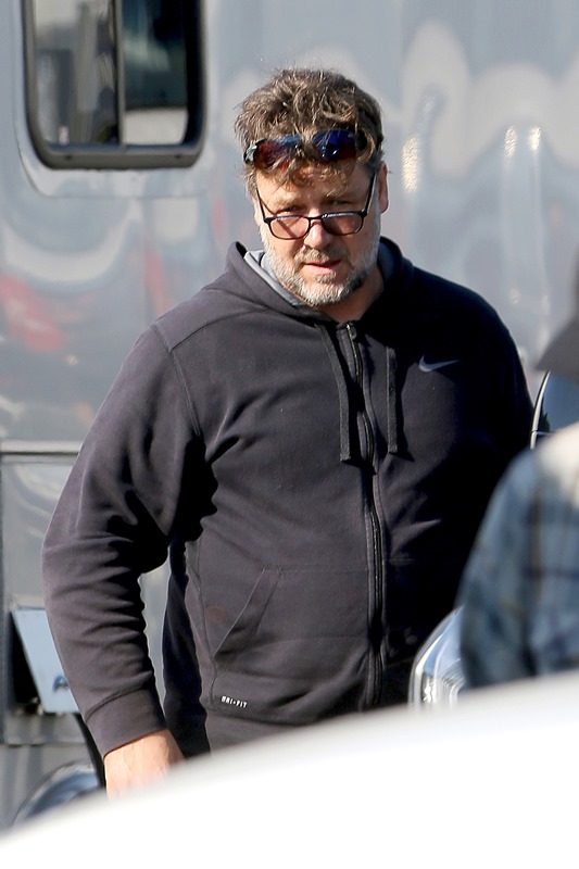 Ryan Gosling cracked a smile yesterday on the set of The Nice Guys in Atlanta. He’s shooting the movie with Russell Crowe, seen here earlier in the week, looking as he always does – no nonsense. I’ve interviewed Crowe and he was lovely – at least to me – but I was terrified. He wasn’t happy with the junket room that day and he said it was too loud and sh-t had to be moved around and people were running around all scared, trying to please him, and I worried, I worried that he wouldn’t like my questions. In the end, it was fine. I’m just saying…it can be intimidating to be around him.