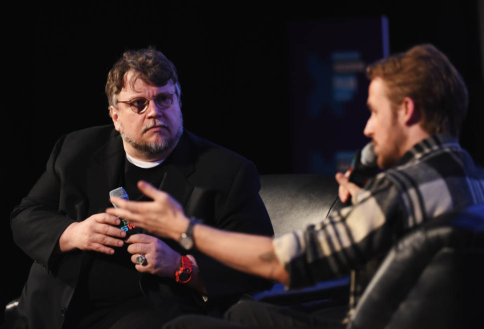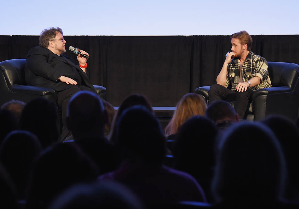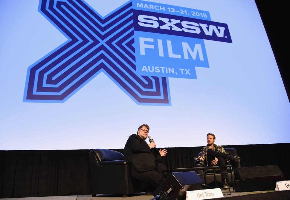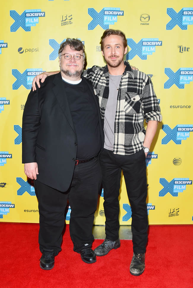 Ryan Gosling presented his film, Lost River, at SXSW this weekend. First, a conversation moderated by his friend, the director Guillermo del Toro. The two are apparently quite close. Throughout the discussion, even though the film was not well received in Cannes, del Toro repeated several times how much he admired Gosling’s work, going out of his way to make sure people knew that he thinks the film is good. It turns out that he’d been advising Gosling on Lost River for a while. The two talked about how Gosling went over to del Toro’s while he was still developing the story to show him his ideas and del Toro was so supportive, he even told Gosling that if he didn’t want to direct it, he would happily step in for him.