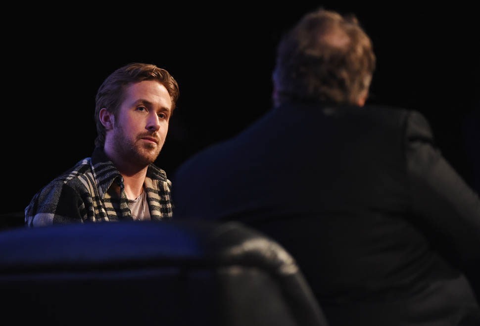 The next day, at the screening, Gosling was joined on stage by several members of his Lost River cast including Eva Mendes, Saoirse Ronan, Ben Mendelsohn, and Iain De Caestecker. During the Q&A, after De Caestecker told the audience that:
