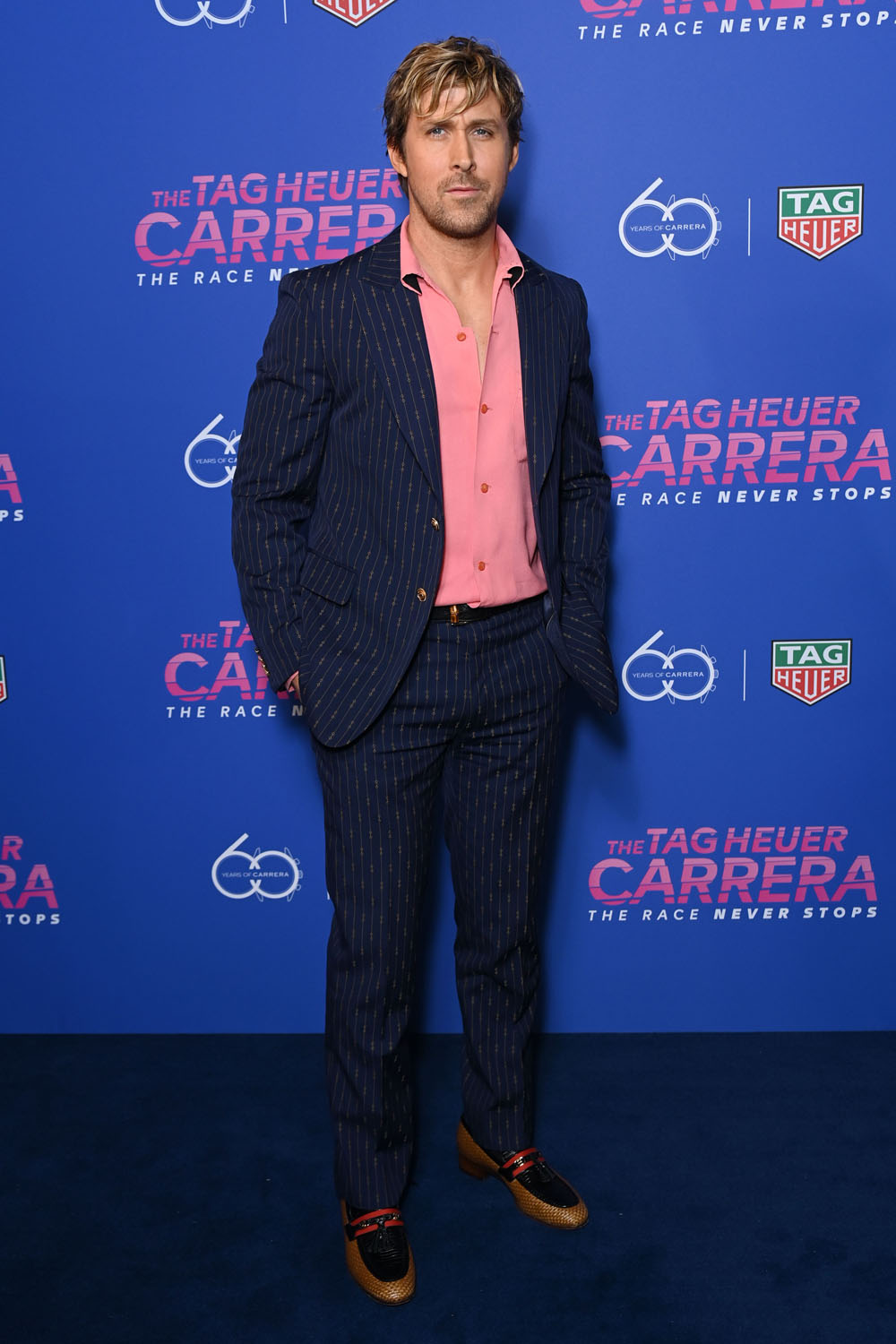 Start your weekend right with Ryan “He’s Just Ken” Gosling in a patterned suit and pink shirt. He’s also still rocking the hot Fall Guy hair that Lainey likes so much. The Gos attended a TAG Heuer party marking the 60th anniversary of their Carrera timepiece. TAG was his first brand partnership, and they’re still going strong eighteen months later.