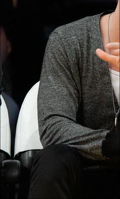 Check him out courtside at the Laker game earlier this week. Maybe it’s just what he’s wearing. When he’s wearing a crisp white shirt, it’s not a problem. Like when he was touring with Dead Man’s Bones with his shirtsleeves rolled up and his forearms and his amazingness, oh la, all good. In this clingy cardigan – is it a cardigan??? – and a beater underneath, and that v-neck and the chain... I don’t know... it’s just not my favourite look.