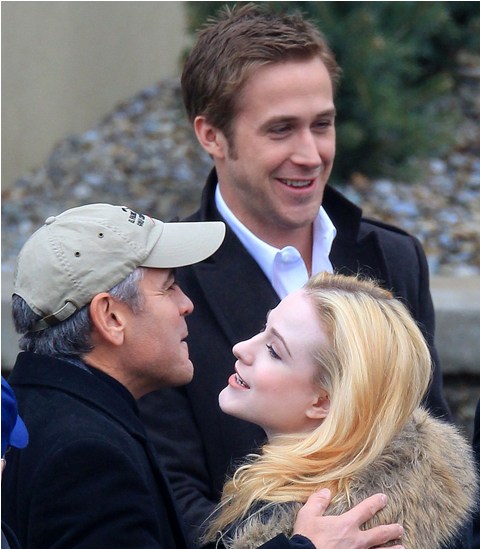 Evan Rachel Wood also seems to be getting on really well with the Clooneys. She gave George’s dad Nick a big hug when he arrived. And Photo Assumption says she and Ryan seem to be working well together too. They certainly look good together. She wasn’t shy either when she signed on to the project about, um, his attractiveness.