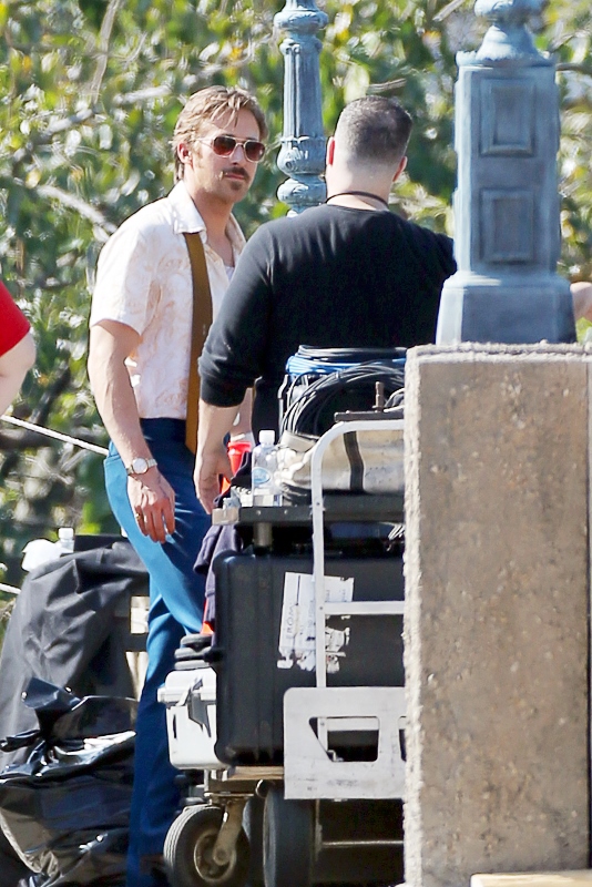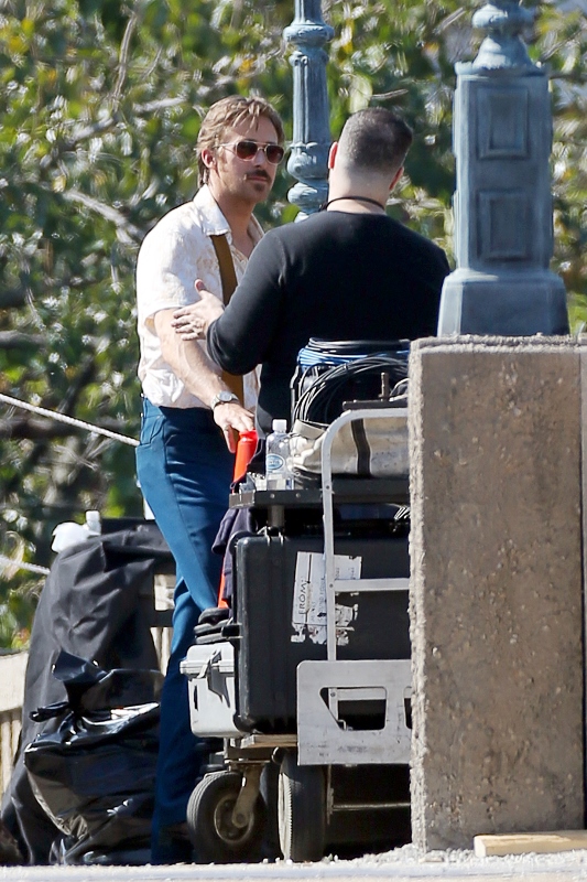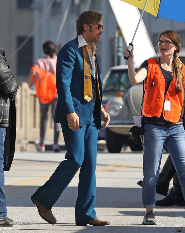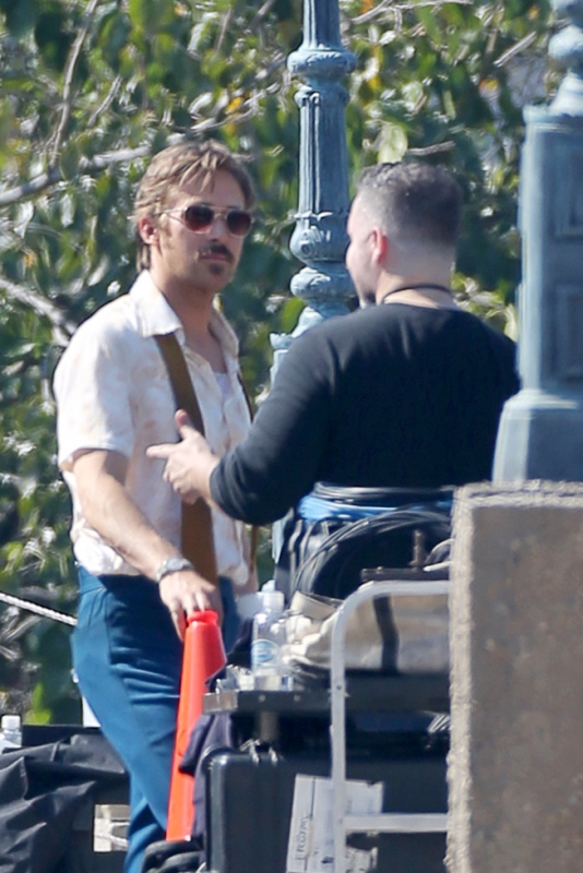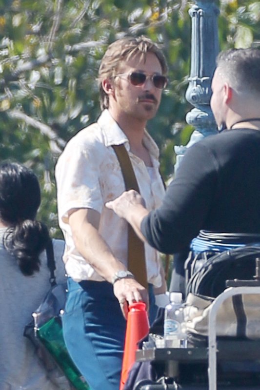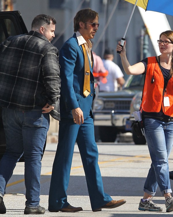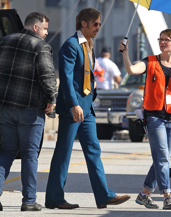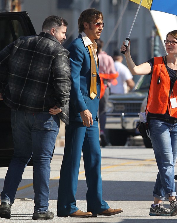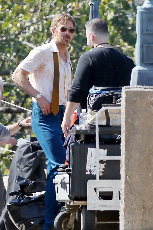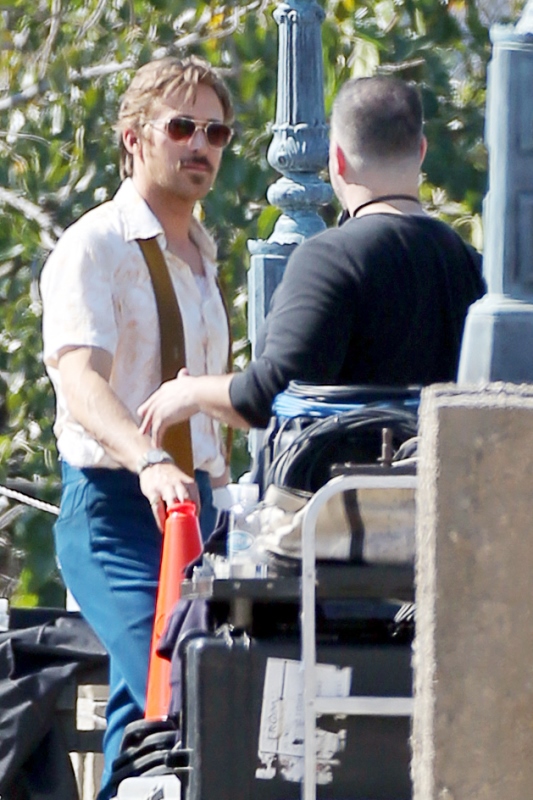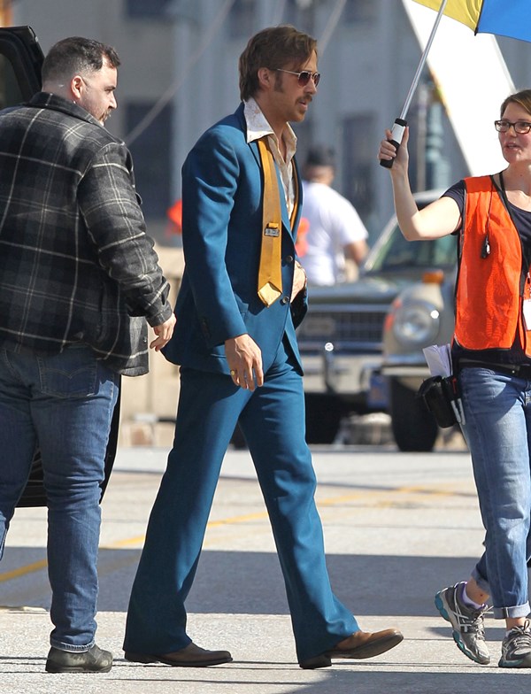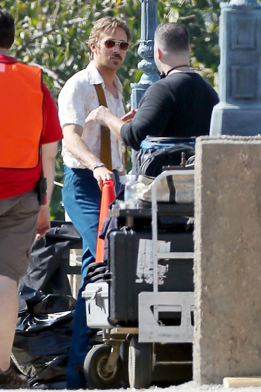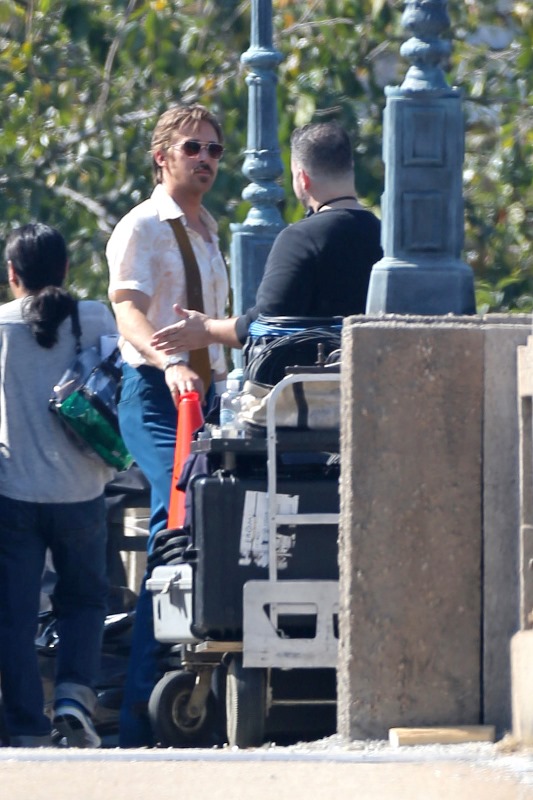 For the second day in a row, we’re opening with Ryan Gosling. Check him out in Atlanta continuing to work on The Nice Guys in 70s costume.