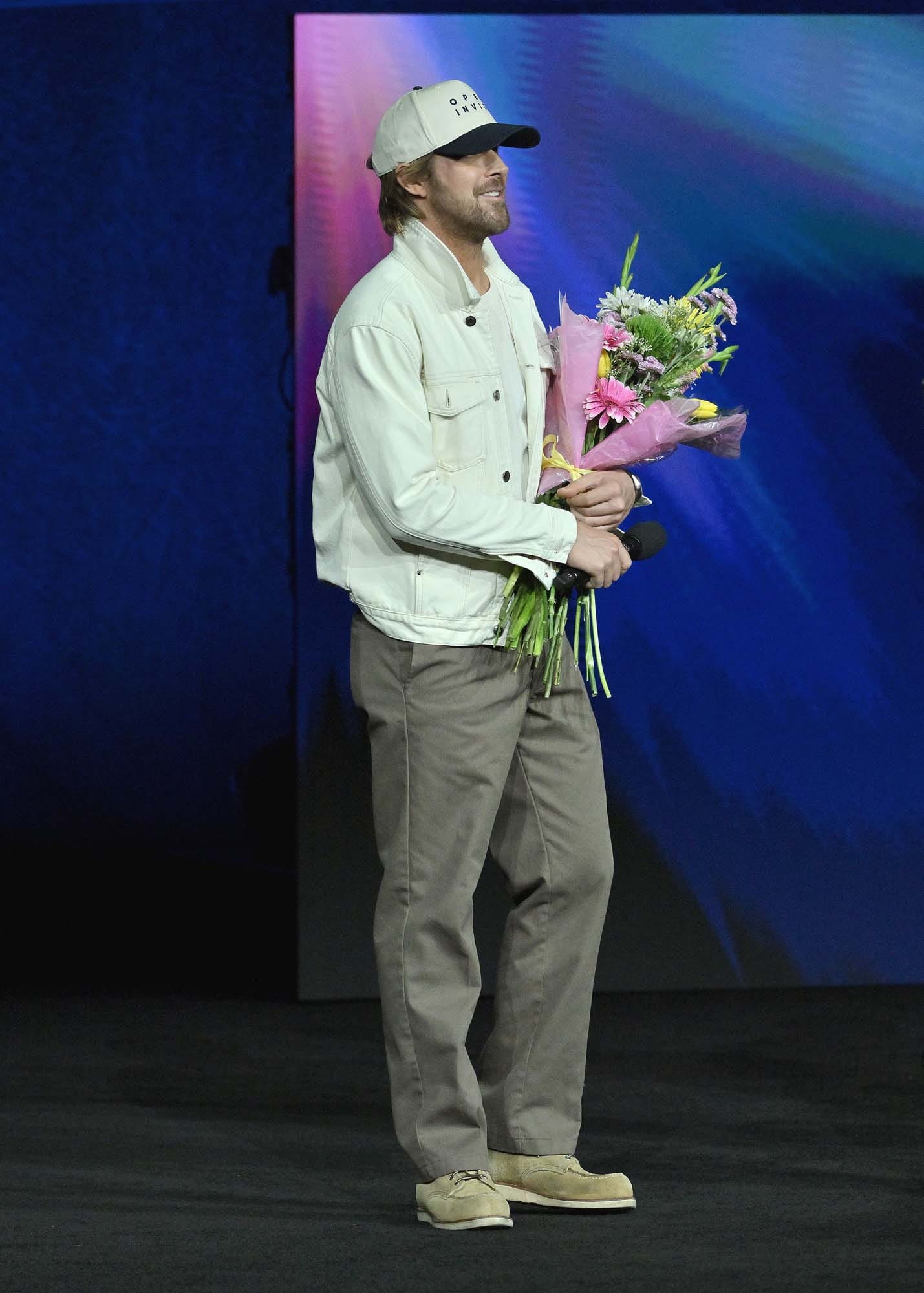 As Lainey said, CinemaCon is a celebration of movie stars and star power, and to that end, Ryan Gosling appeared to celebrate the success of Project Hail Mary and literally give the audience of theater owners their flowers.