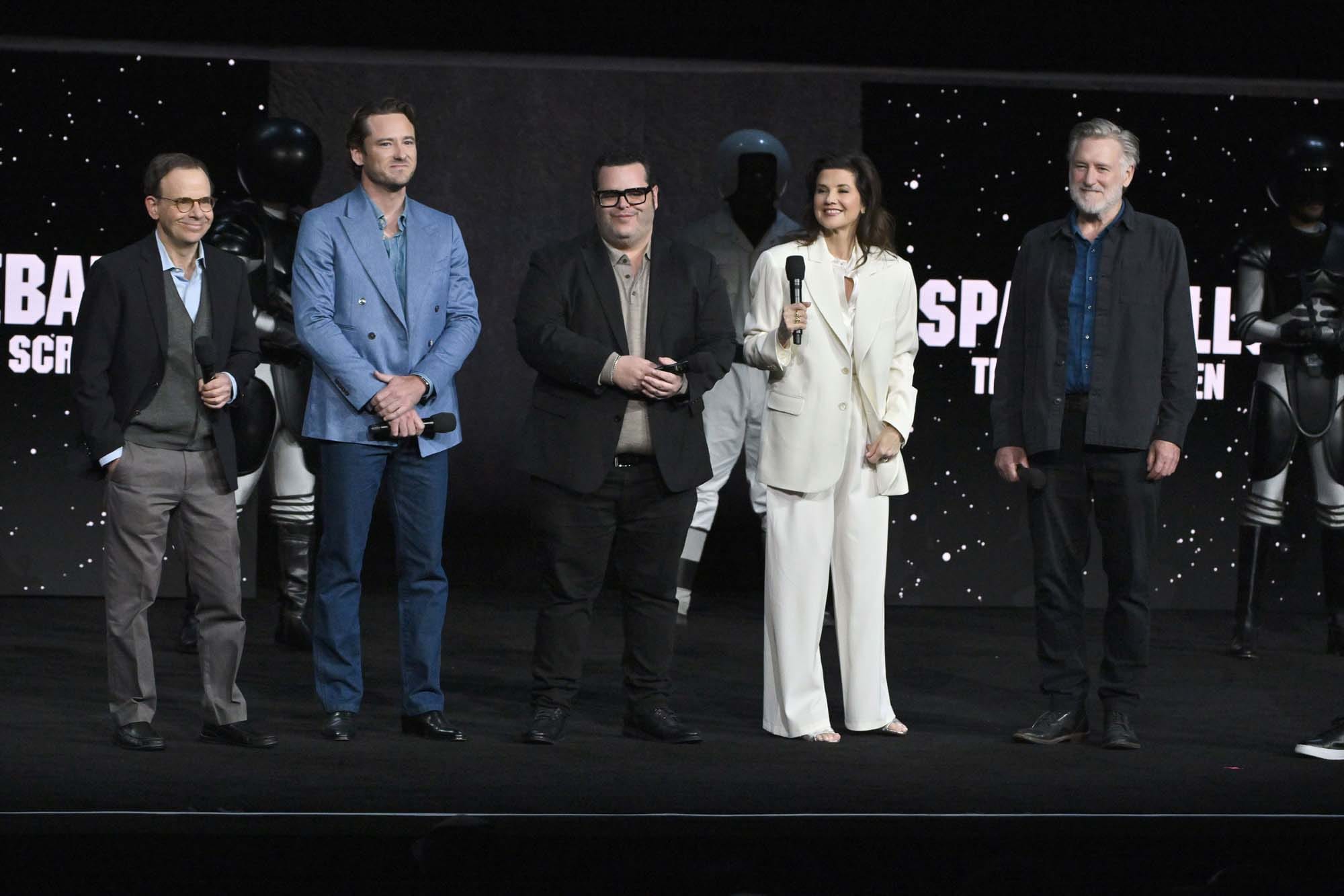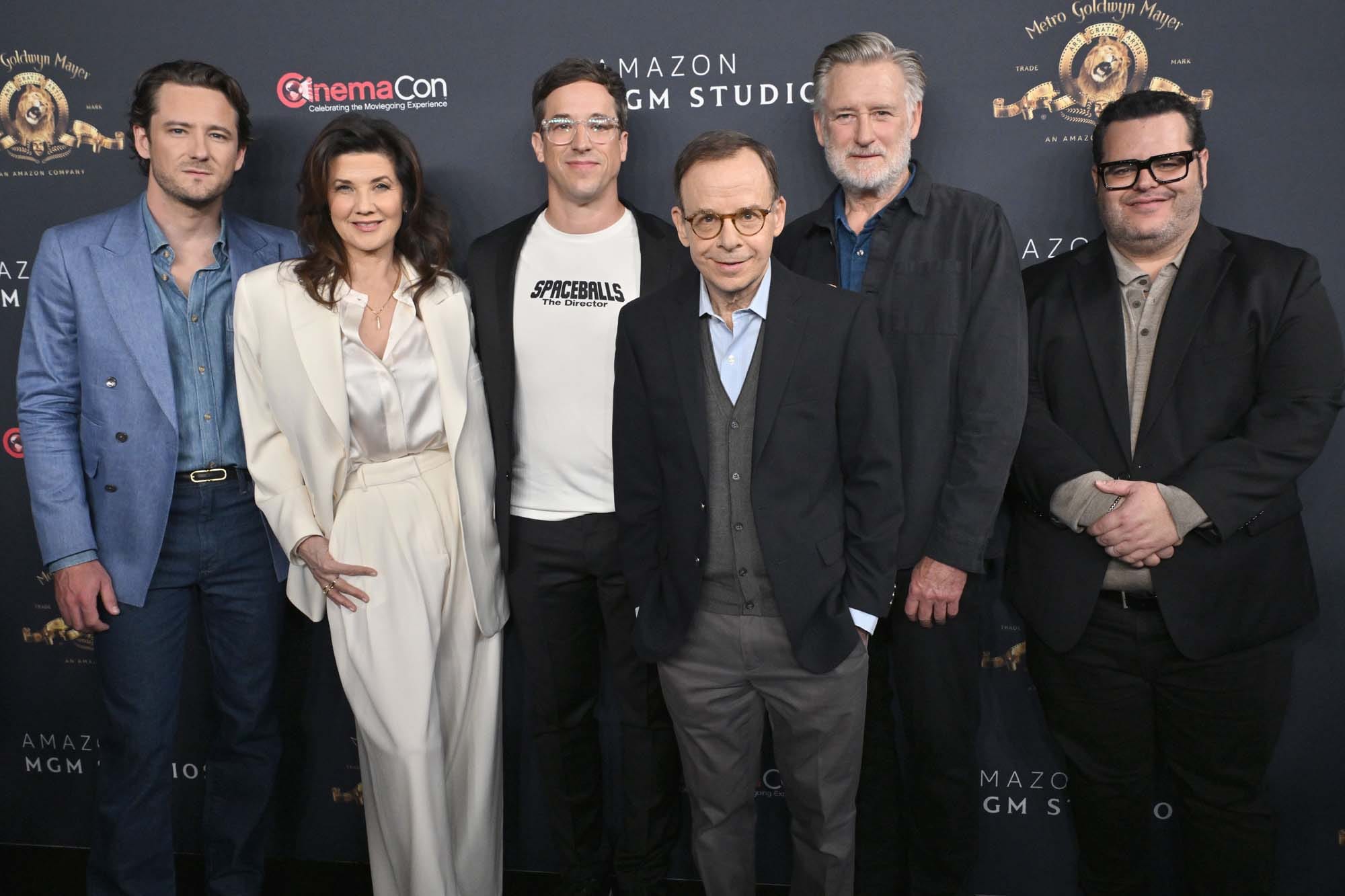 Camila Mendes, Nicholas Galitzine and Travis Knight promote the upcoming film "Masters of the Universe" at the Amazon MGM Studios presentation at The Dolby Colosseum at Caesars Palace during CinemaCon, the official convention of Cinema United, on April 15, 2026 in Las Vegas, Nevada/Rick Moranis, Lewis Pullman, Josh Gad, Daphne Zuniga, Bill Pullman and Josh Greenbaum promote the upcoming film "Spaceballs 2" at the Amazon MGM Studios presentation at The Dolby Colosseum at Caesars Palace during CinemaCon, the official convention of Cinema United, on April 15, 2026 in Las Vegas, Nevada/Ben Stiller promotes the upcoming film "Focker In-Law" at the Universal Pictures and Focus Features presentation at The Dolby Colosseum at Caesars Palace during CinemaCon, the official convention of Cinema United, on April 15, 2026 in Las Vegas, Nevada/Christopher Nolan at Caesars Palace during CinemaCon, the official convention of Cinema United, on April 15, 2026 in Las Vegas