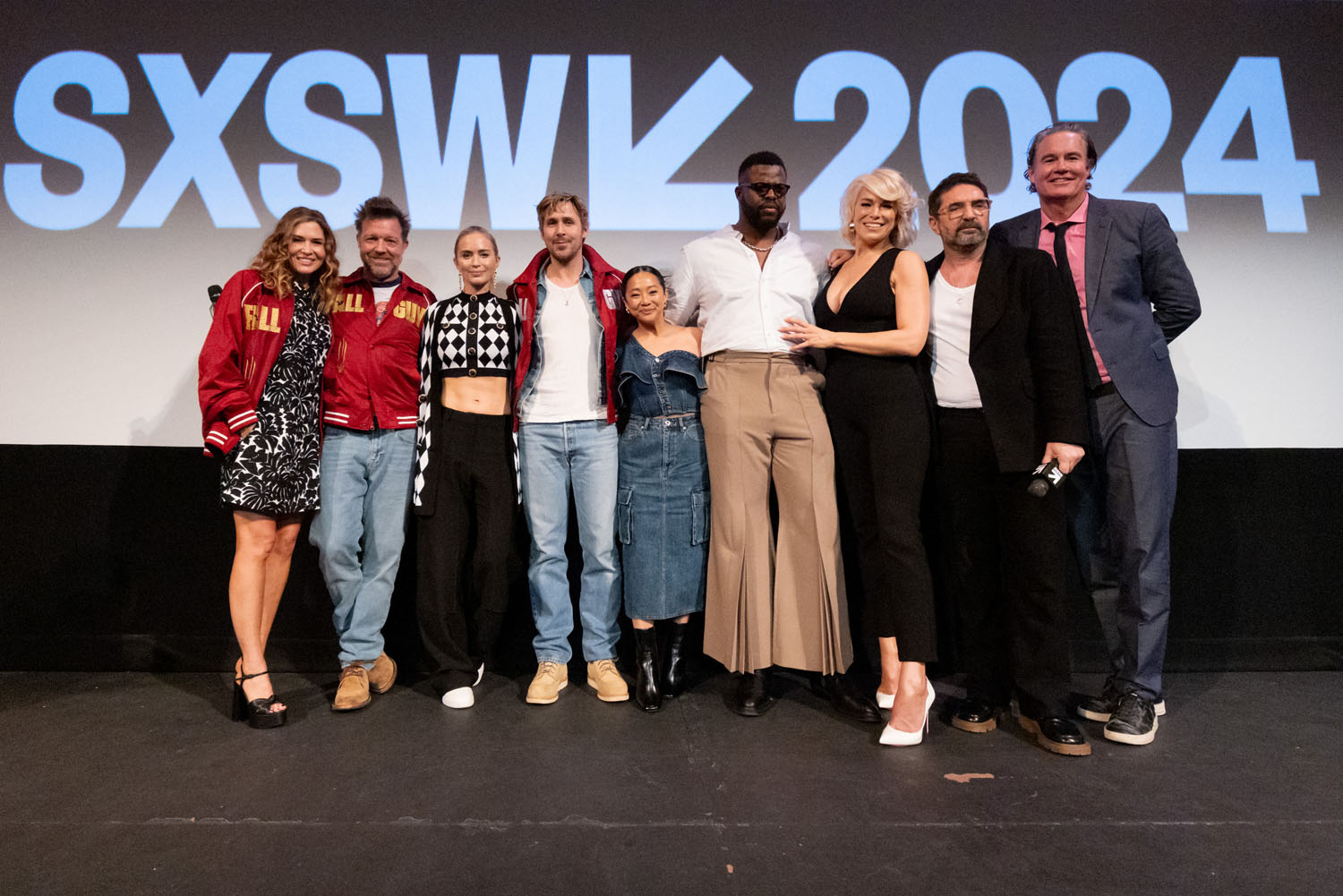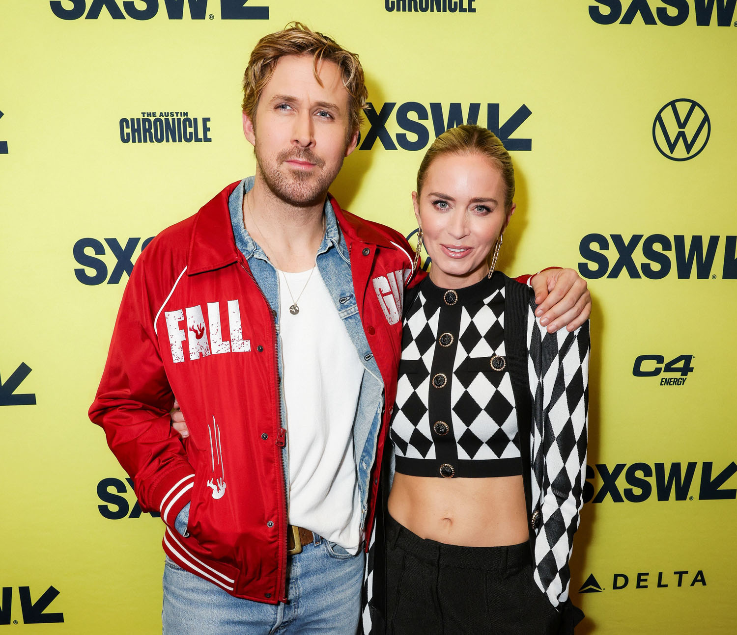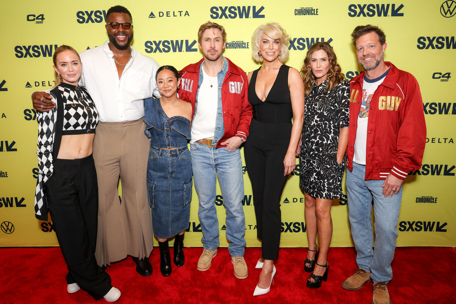 He and the cast and crew, including director David Leitch, and co-stars Emily Blunt, Stephanie Hsu, Winston Duke, and Hannah Waddingham premiered the film at SXSW this week and as you can see, Ryan’s replaced his pink bomber with a red one. Suddenly he’s the ultimate pitchman: