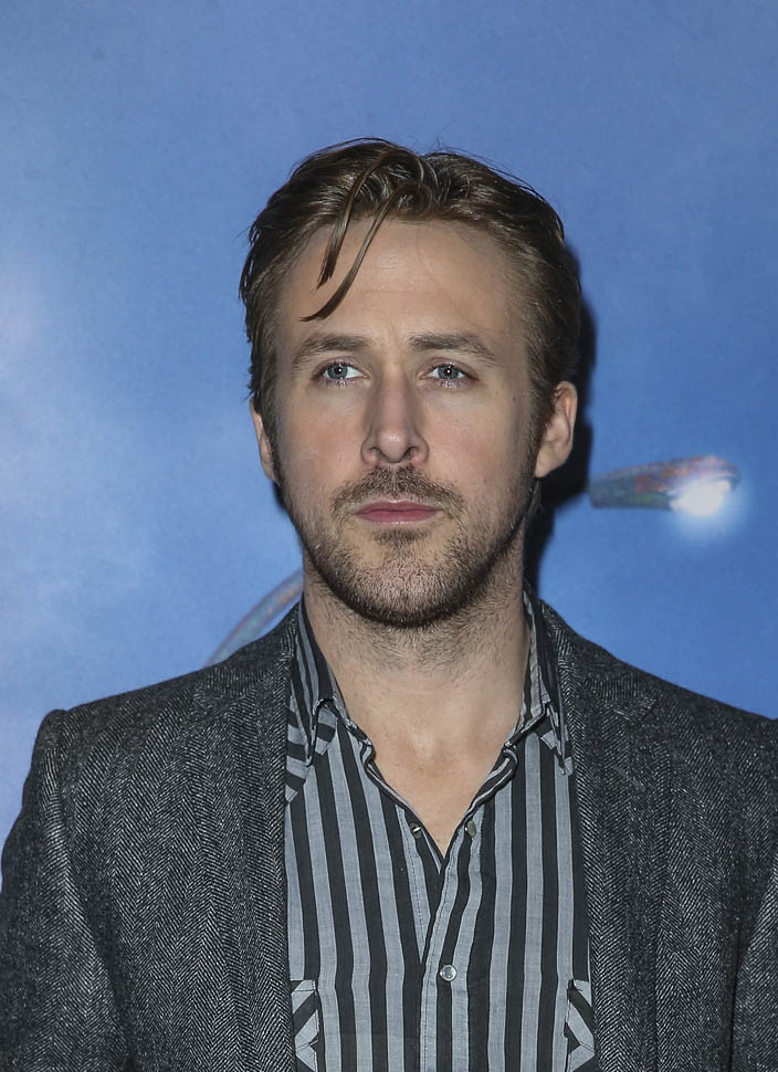 Here is not so good. With your real eyes, it’s really not so good. In that suit, especially, and the hair with the sideburns, doesn’t he look like the high school quarterback who peaked at 18? Un-fresh is the word that comes to mind. Which, I mean he’s tired. He’s been travelling. But you’ve seen Ryan Gosling a lot cuter. You know you have.
