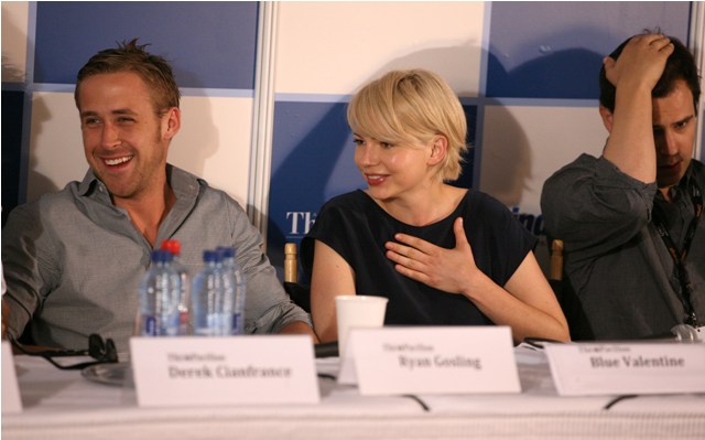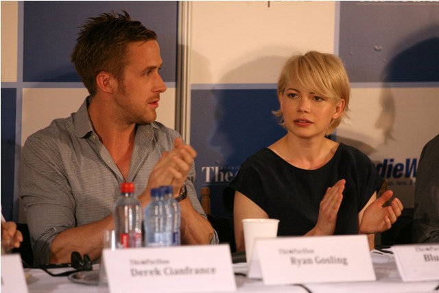 This afternoon Ryan was at the American Pavilion participating on a panel discussion with Michelle Williams and Derek their director. I'm writing this on blackberry right now so I'm not able to look up his last name. Besides, you only want to know about Ryan anyway.