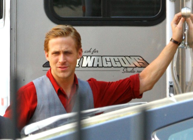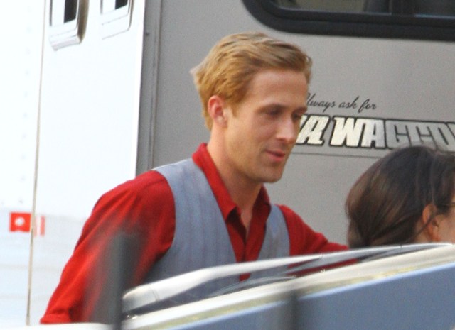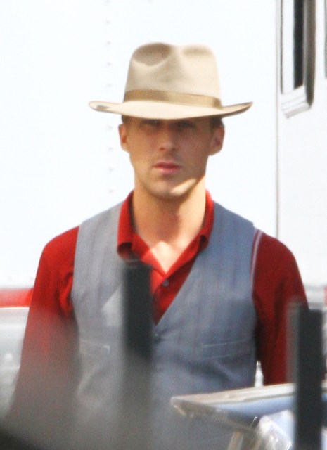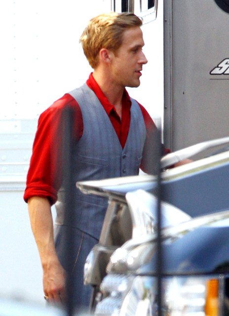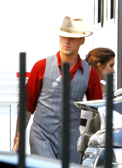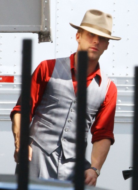 Ryan Gosling was photographed yesterday afternoon in LA on the set of Gangster Squad. And considering the time difference (he was supposedly there at 11pm ET) and that it takes 5 hours to fly from LA to Toronto, I’m not actually sure it was possible. Which makes me wonder who those people thought they were seeing. And how they could have possibly mistaken someone else for Ryan Gosling.