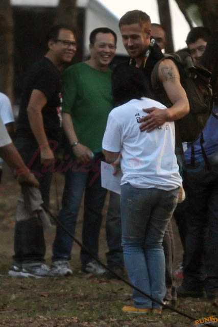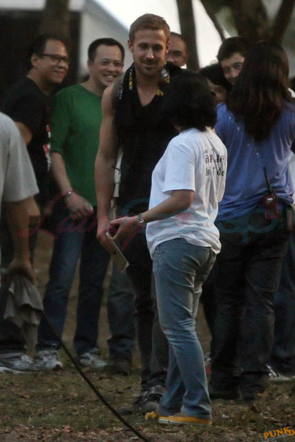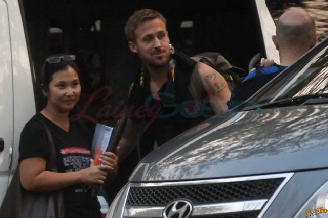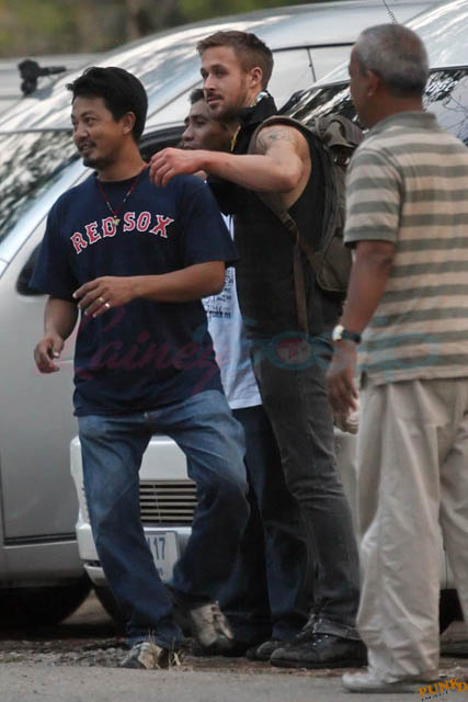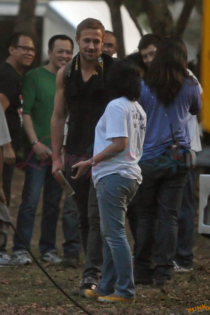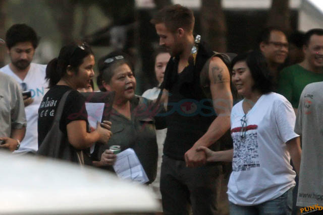 Eva wasn’t around on Ryan’s final day on the set of Only God Forgives. Here he is saying goodbye to the crew in Thailand before heading home to, sorry, Eva who was waiting for him back at the hotel. I posted photos of the two earlier this week - click here to see.