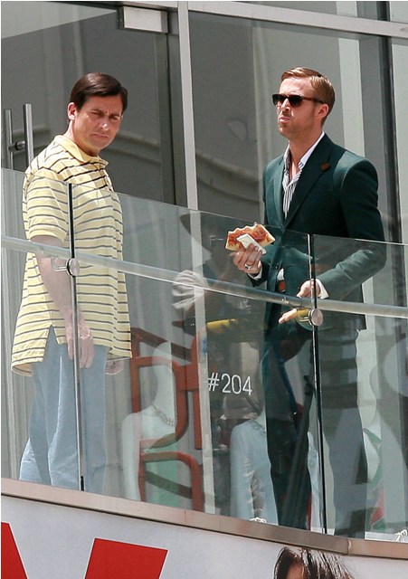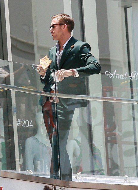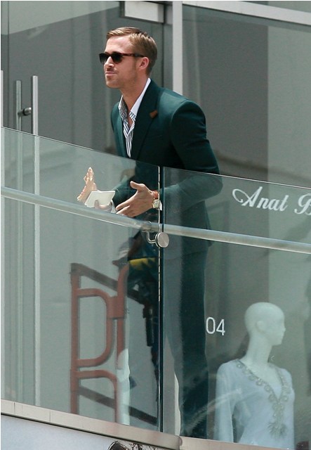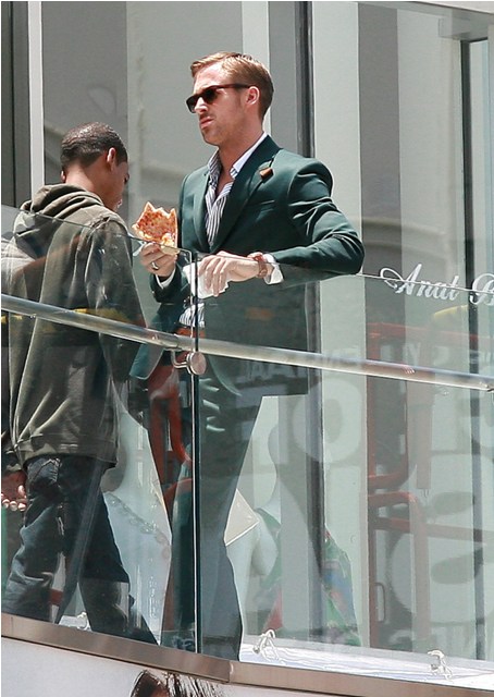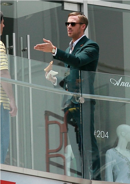 Ryan Gosling was spotted on set of that untitled Dan Fogelman comedy yesterday, headlined by Steve Carell, also starring Emma Stone, wearing the sh-t out of that suit and now this day is shot for concentration. Goddamn that is too much. TOO much.