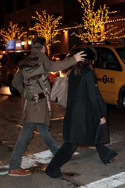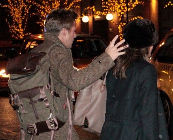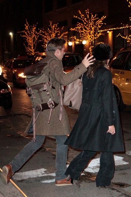 On December 30, Ryan flew with his bonafide from LA to NYC where they celebrated NYE. I like the way his hand is in her hair as they cross the street after kissing. HOT. I don’t like the way he’s suddenly all photo-shy with trying to cover up his face.