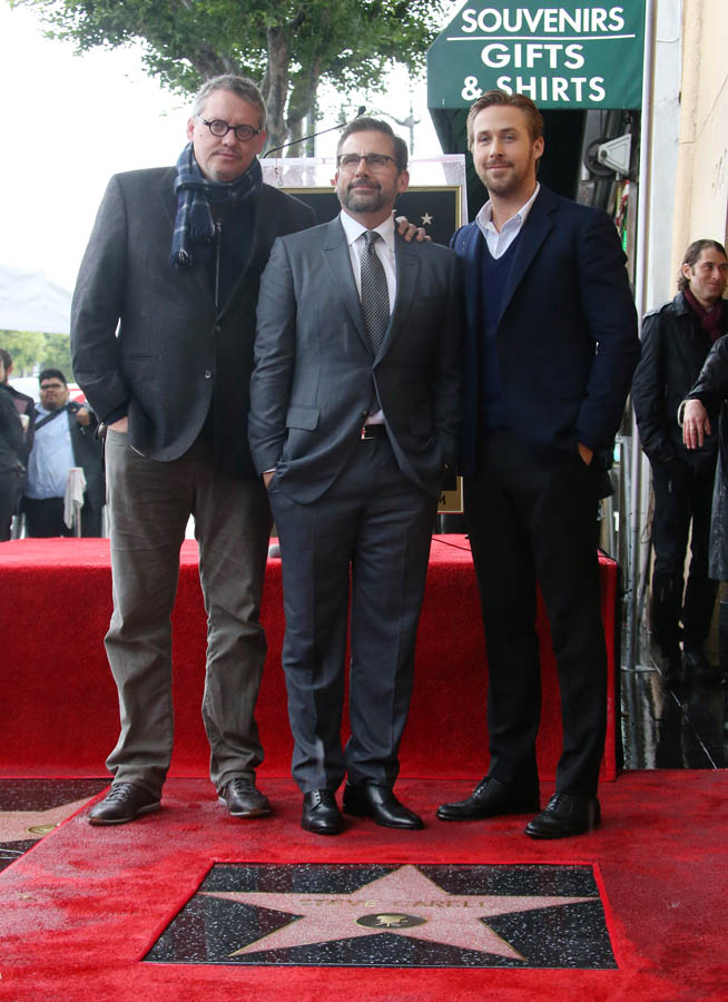 As you know, they’ve now worked on two projects together – The Big Short and Crazy, Stupid, Love. So Ryan was one of the people who showed up for Steve yesterday in Hollywood when he received his star on the Walk Of Fame with director Adam McKay. I totally believe they’re close. I also believe it doesn’t hurt with Oscar nominations voting (ballots due tomorrow) to see the solidarity here. The Big Short has been nominated for four Golden Globes – Steve and Christian Bale were both singled out for acting, Adam for his screenplay, and the film for Best Picture Musical or Comedy which means Brad Pitt, a producer, has his name up there. Ryan’s actually the only marquee name attached to the film who hasn’t been recognised individually. Will he show up at the event as part of the team? I think he will. Will Eva Mendes be with him? That’s the question. Because Rachel McAdams could show up in support of Spotlight.