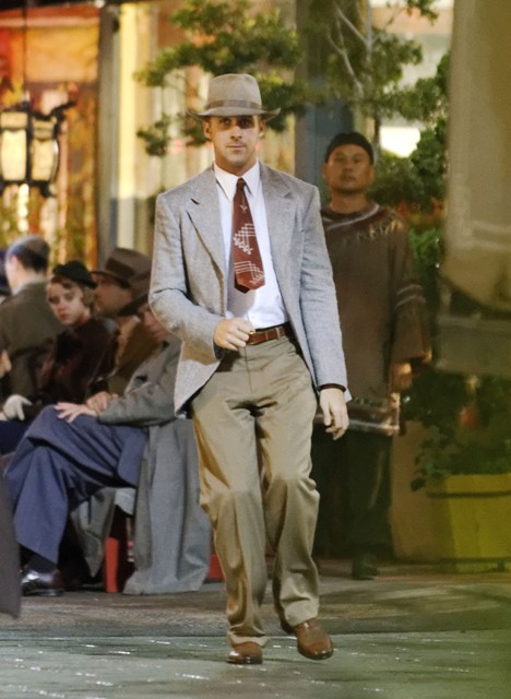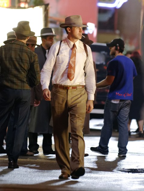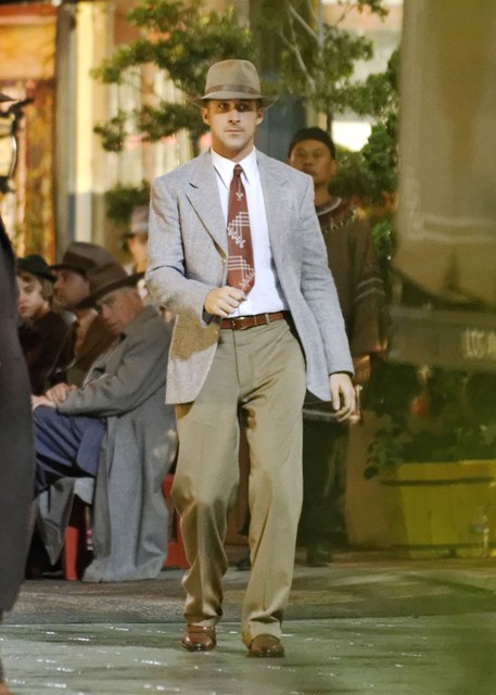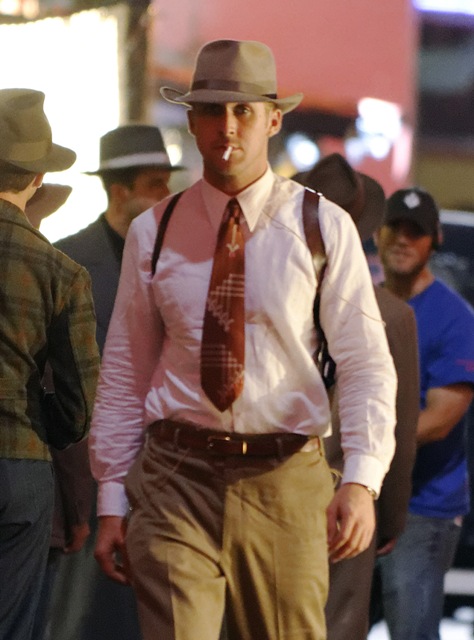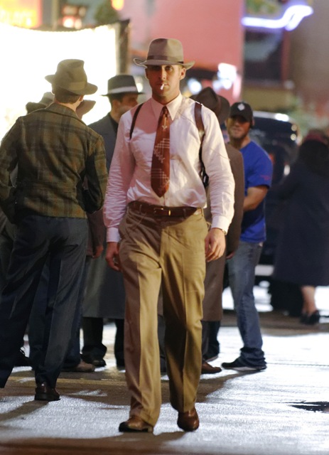 Attached - more pictures of Ryan Gosling last week on the set of Gangster Squad (reshoots). He’ll be at TIFF next week. Looks like his screening will be on the first Friday night. Mayhem to start the weekend!