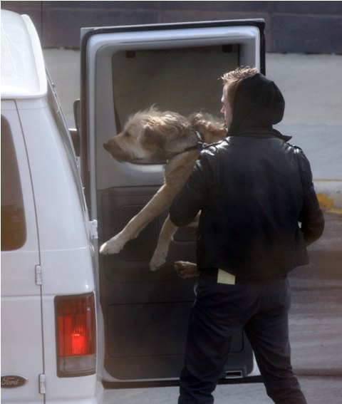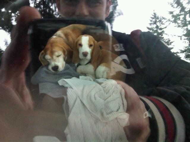 It’s not my favourite thing in the world, picking up my dogs’ sh-t, but it’s what happens when you have dogs. You pick up a lot of sh-t. And here’s Ryan Gosling after picking up his dog’s sh-t in Detroit on the set of the Ides of March. I like it that Ralph has been travelling with him. I feel sad though that Ralph couldn’t jump up into the van by himself. At his size, he should have been able to when he was younger. This is the terrifying thing about having a dog. They get older. We don’t like to think about this. But it’s a big part of why we brought home a puppy. Marcus is almost 8. They say having a younger one around keeps the older one younger too. So far, that seems to be true. Marcus still kinda hates Barney, but he’s a lot more playful these days. Suddenly his old toys are really, really interesting again. As for Barney, well, he doesn’t seem to be too deterred by the fact that his big brother can’t stand him, follows him around all the time. Marcus only allows him to be close though when he’s sleeping. They grow fast, non? Barney is long now.