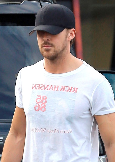 Ryan Gosling was papped yesterday in Austin. He went to the gym with a friend wearing a Rick Hansen t-shirt. Rick Hansen is a big ass deal for us in Canada. Hansen celebrated the 25th anniversary of his Man In Motion tour in May after a 9 month anniversary tour that ended in Vancouver, BC, same place that marked the end of his journey AROUND THE WORLD IN HIS WHEELCHAIR a quarter of a century before, all in the name of spinal cord research. Can I just drive this home some more? Dude pushed himself in a wheelchair around the world, took him 2 years, to raise awareness and funding for those suffering spinal injuries...