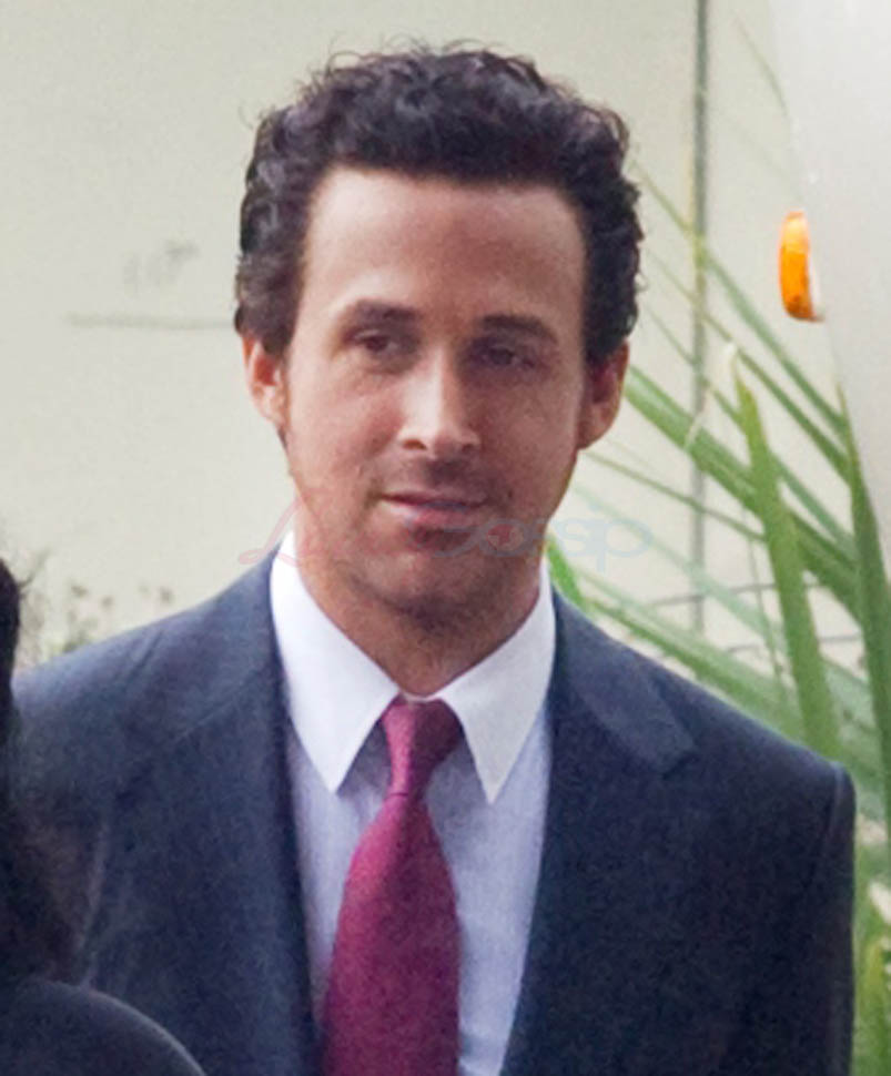 Ryan Gosling, the celebrity human pillow, now in his 30s, doesn’t look good with dark hair. Part of it has to do with the way it’s been styled, sure. But also, the dark hair accentuates even more the shape of his face, in particular his forehead and that, in turn, brings his eyes together. I don’t think he has a cute forehead. Am I allowed to say this? It doesn’t mean he’s not goodlooking. OF COURSE HE’S GOODLOOKING. He’s just better looking as a blonde. Am I allowed to say that?