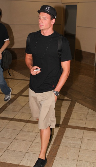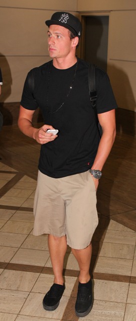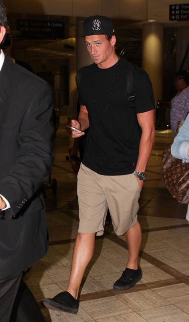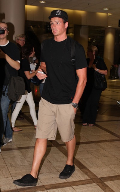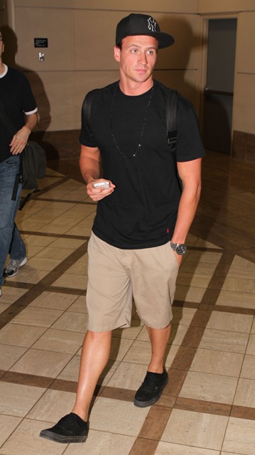 Ryan Lochte arrived in LA last night presumably to start work on his guest role on 90210 and also to take meetings for a variety of Dancing Bachelor reality shows he’s trying to be a part of. Hollywood Lochte! A proper LA boy now!