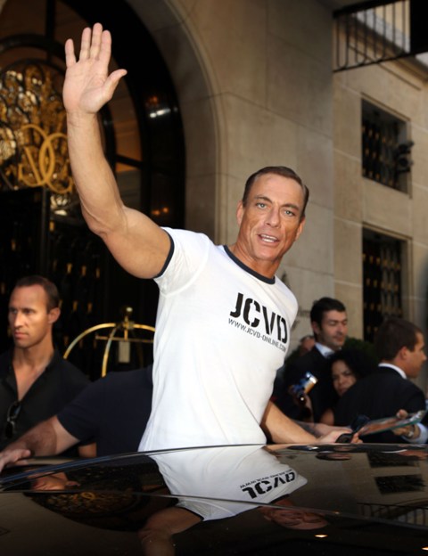 As you know, I’ve been obsessed this week with Jean Claude Van Damme on press tour for The Expendables 2. He’s been bringing it on every carpet. Here’s JCVD being JCVD in Paris. I wonder what his wife is really thinking. I also wonder if he split tests his pants before buying just to make sure they can accommodate his random kung fu kicks.