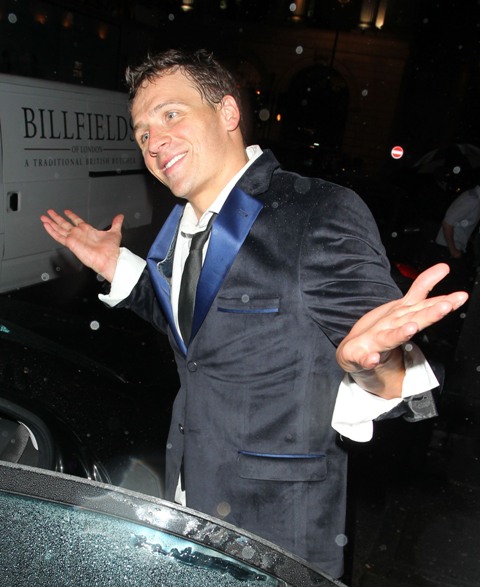 Ryan Lochte was out last night in London. He seems to enjoy getting papped, non? A lot. After London 2012, I wonder how he’ll deal with not being followed and talked about constantly anymore. Look at Ryan Lochte. Ryan Lochte doesn’t want to fade away and live a private life. Ryan Lochte wants it bad. Ryan Lochte wants it bad enough for Dancing With The Stars.