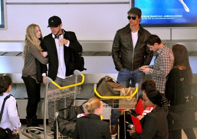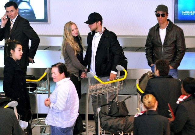 While his ex-wife is selling her movie, and her wedding, back at home in North America, Ryan Phillippe is selling his movie The Lincoln Lawyer, with Matthew McConaughey, in Europe, first stop Paris. His girlfriend Amanda Seyfried has come along for the ride. And they’re holding hands at baggage claim. So it must be love.