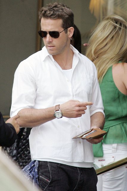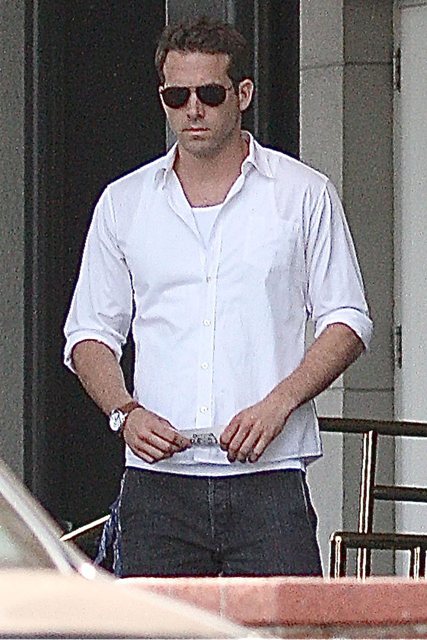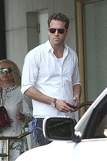 This is Ryan Reynolds at Saks in Beverly Hills yesterday with what looks like a recent haircut, as handsome as ever in his beefcake way. Even in candids he looks like he’s wearing foundation.
