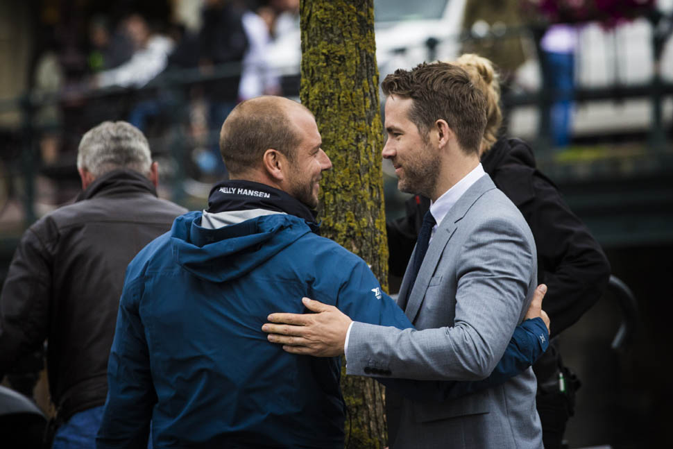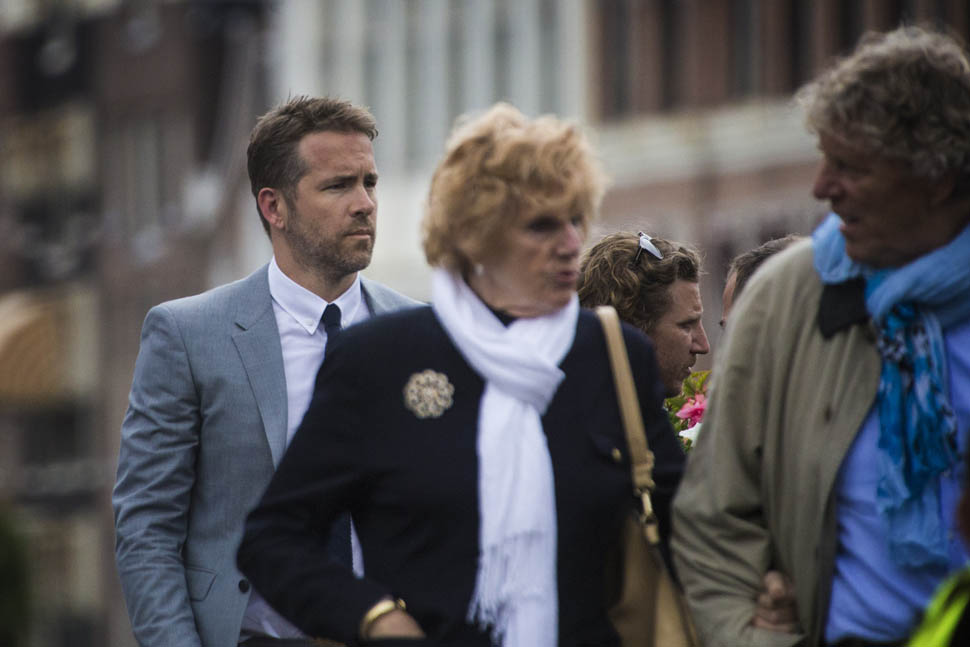 Ryan Reynolds is in Amsterdam working on a new movie called The Hitman’s Bodyguard. This is the first we’ve seen of him since we saw him at #Taymerica, sitting in the middle of a coordinated couple three-way. I know you haven’t forgotten but let’s just enjoy it again, OK?