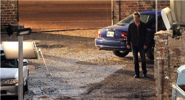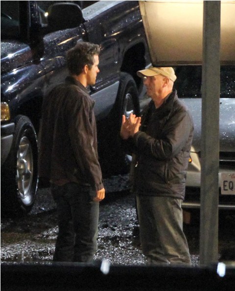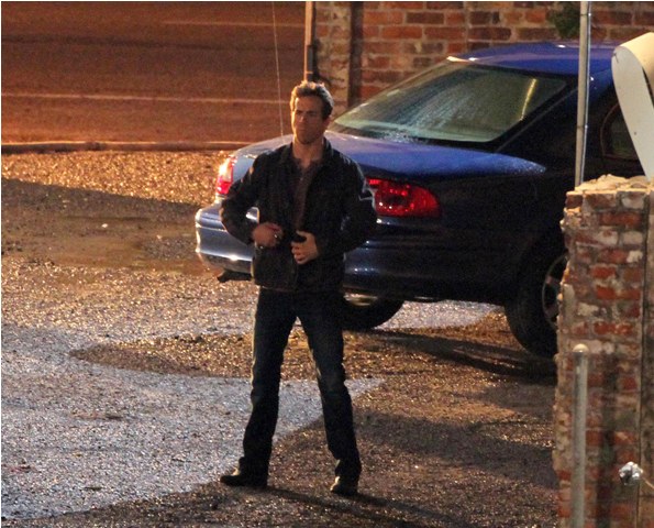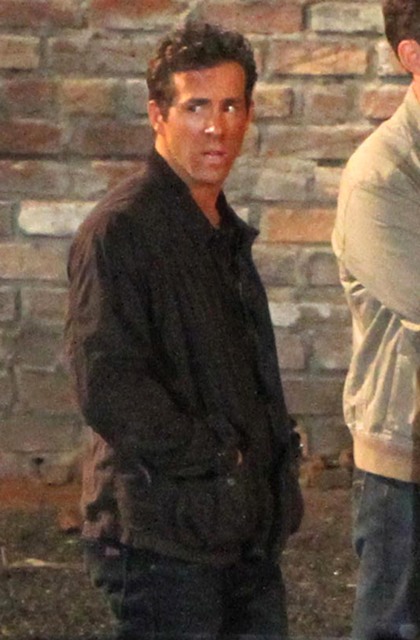 I have ragged on him for his over-foundation face but Ryan Phillippe seems to have taken that title from him (see Saturday Night Live last Saturday) and Ryan Reynolds is currently in New Orleans, pictured here on set shooting The Green Lantern, so let’s assume that it’s some kind of action sequence during which he narrowly escaped incineration and forgive the tangerine hue.