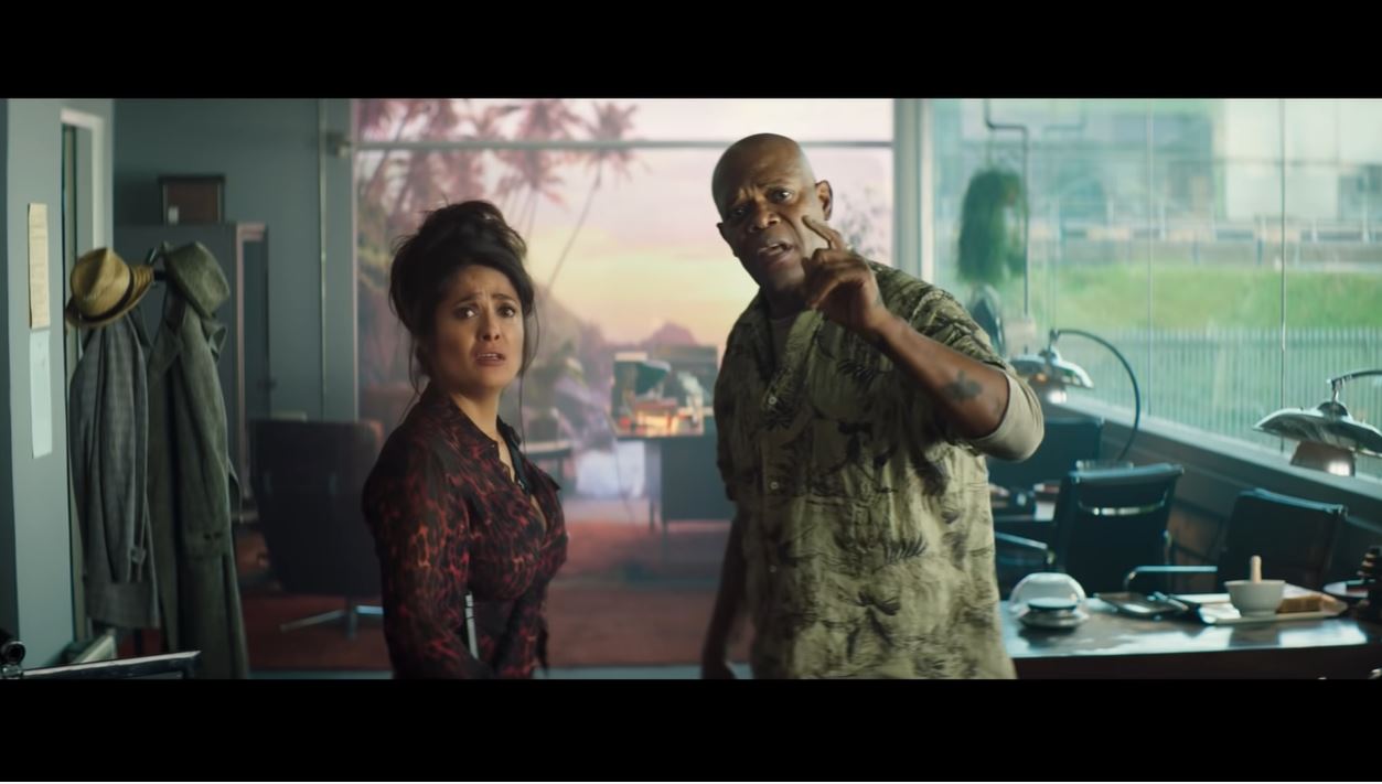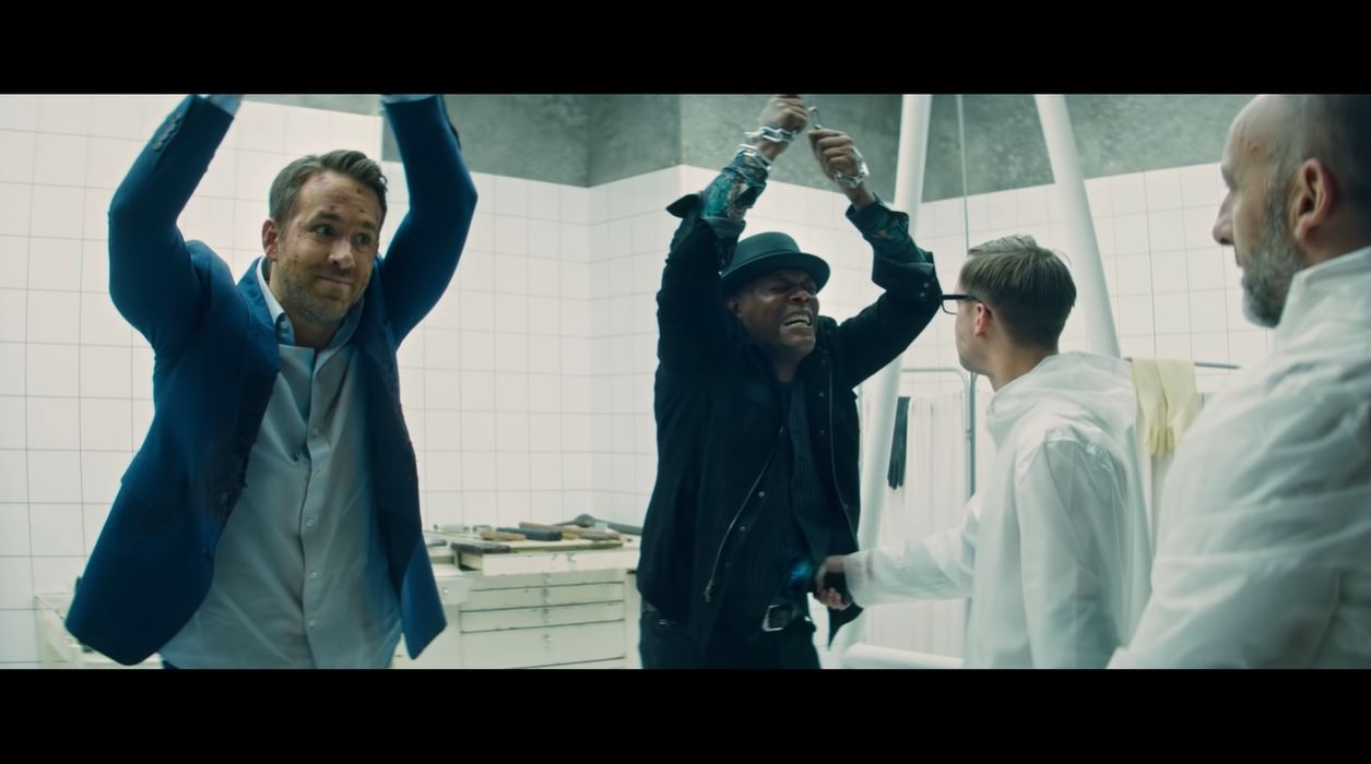 The Hitman’s Bodyguard was one of 2017’s success stories: an original, Black Listed script that survived a last-minute genre change—from drama to action comedy—to become a breakout hit, amassing over $176 million against a $30 million budget, and it helped cement Ryan Reynolds’ as an action star beyond Deadpool—though he arguably does the Deadpool schtick whether he’s in the mask or not. Now comes the sequel, The Hitman’s Wife’s Bodyguard—ugh, the PUNCTUATION—which brings back Reynolds as Cool Guy, Samuel L. Jackson as “Samuel L. Jackson”, and Salma Hayek as “The Girl One”. I remember seeing The Hitman’s Bodyguard, but for the life of me I cannot remember any character names. That’s not the point, I guess, since everyone is pretty much playing a spin on their public persona anyway. Reynolds is the fast-talking slick guy, Jackson is an amalgamation of all his action characters, and Hayek is the bombshell with a sense of humor.